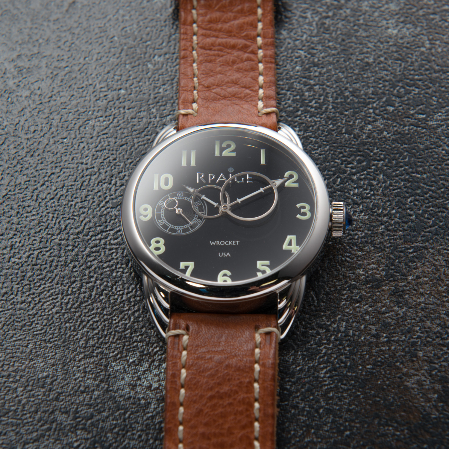 The RPaige Wrocket has been almost a year in the making, and it was very challenging design to create and manufacture. The difficulty was re-engineering the highly intricate “carousel” seconds subdial to fit on the antique/vintage mechanical movement and still allow for second hand wheel to rotate freely underneath the new dial. The designer decided to use only one manufacturer for the movement to keep consistency in the movement engineering, and the best of those was obviously a vintage American pocket watch movement.