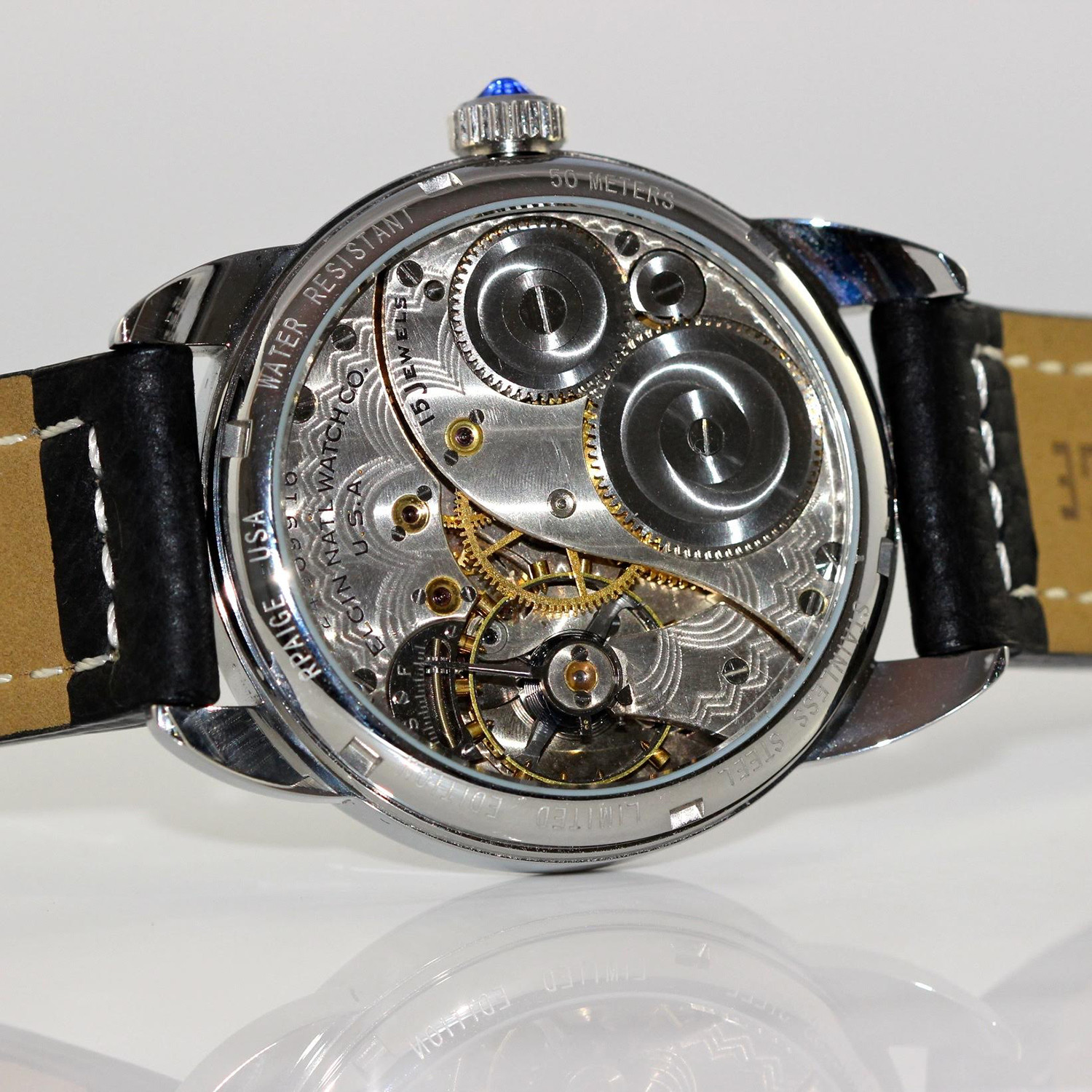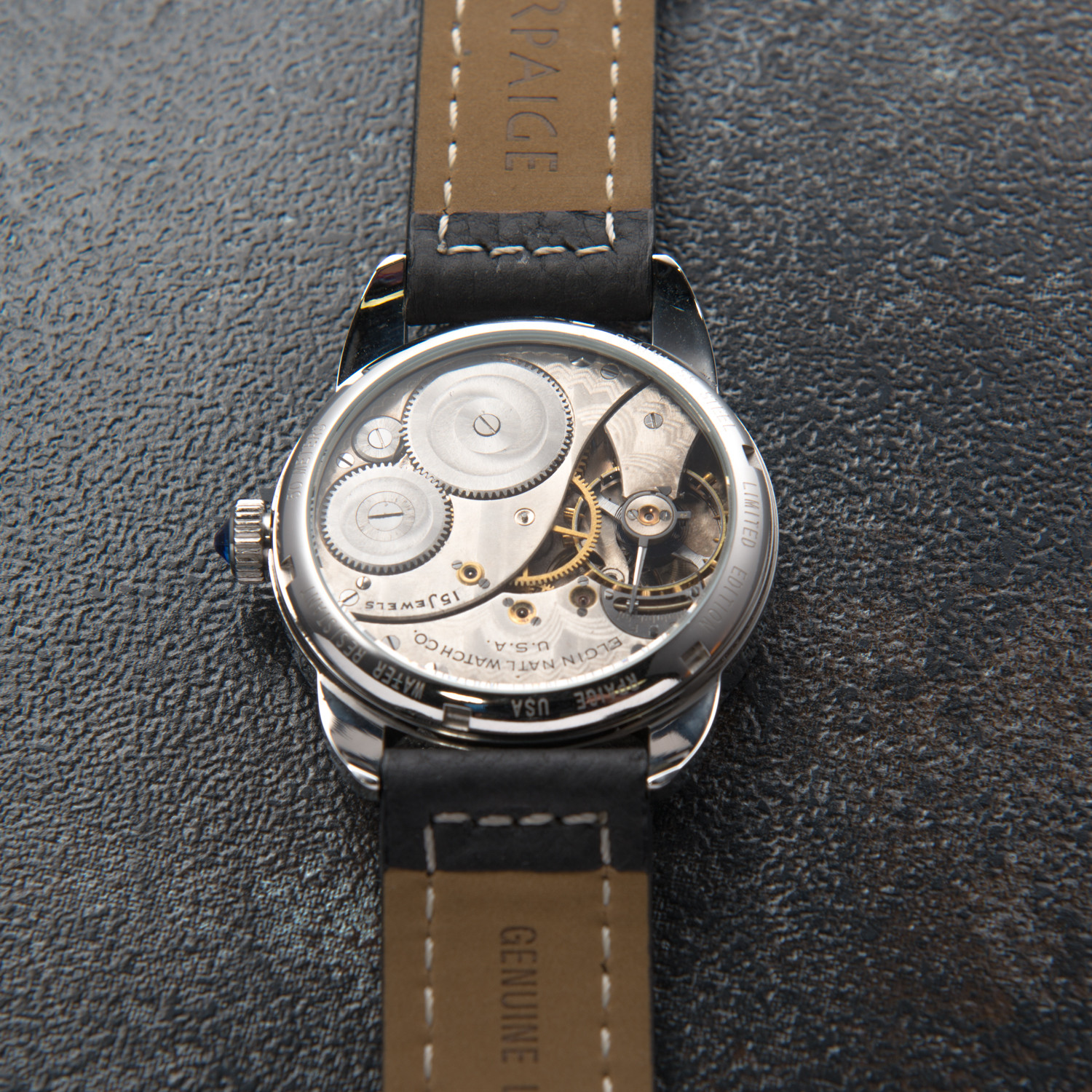 The RPaige Wrocket has been almost a year in the making, and it was very challenging design to create and manufacture. The difficulty was re-engineering the highly intricate “carousel” seconds subdial to fit on the antique/vintage mechanical movement and still allow for second hand wheel to rotate freely underneath the new dial. The designer decided to use only one manufacturer for the movement to keep consistency in the movement engineering, and the best of those was obviously a vintage Elgin pocket watch movement.