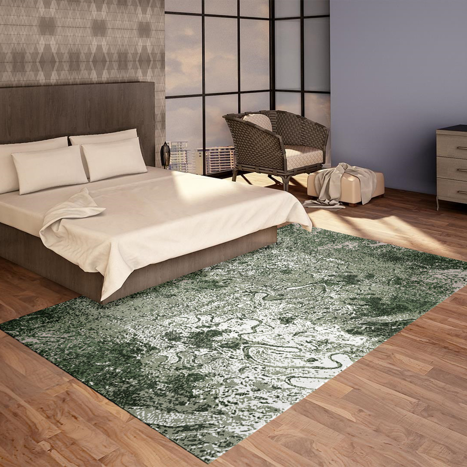 This beautiful, abstract area rug is the perfect contemporary twist on a classic home furnishing, to bring color, warmth and atmosphere to the floor of your bedroom, bathroom, kitchen, or any favorite space.
