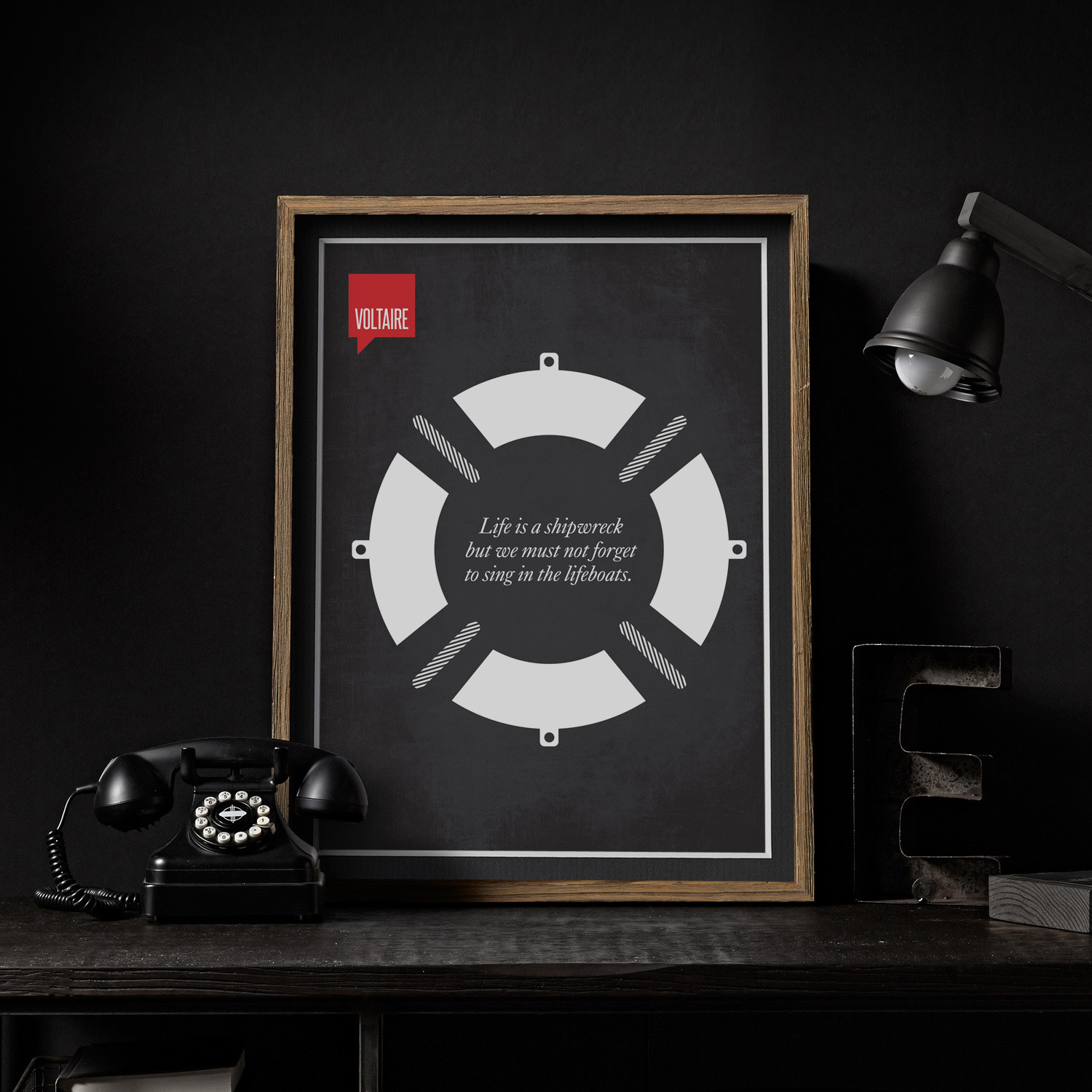 These illustrations are inspired by some of the worlds greatest minds. First drawn by hand and then digitally rendered, the minimalist style of this poster perfectly captures the words of Voltaire in a clever and thought provoking way.
