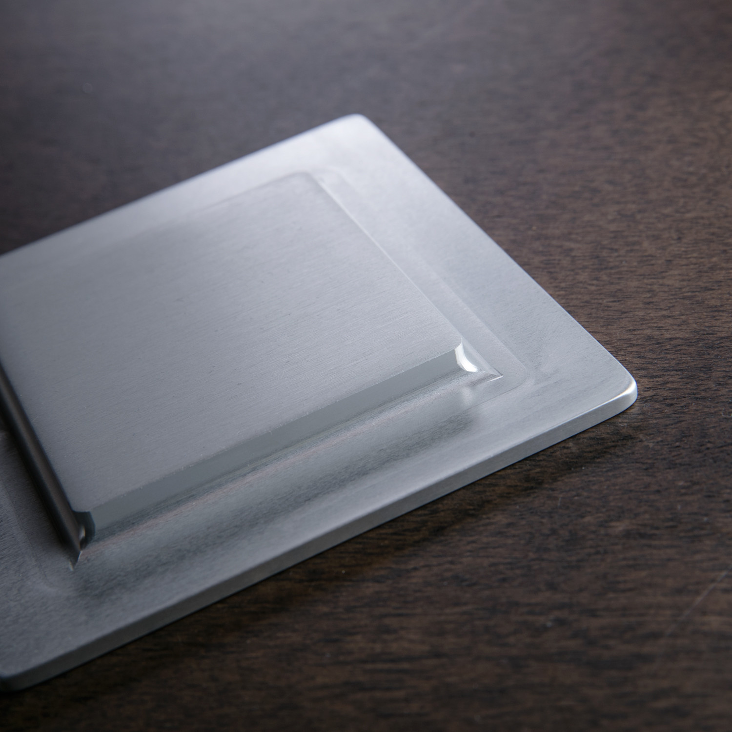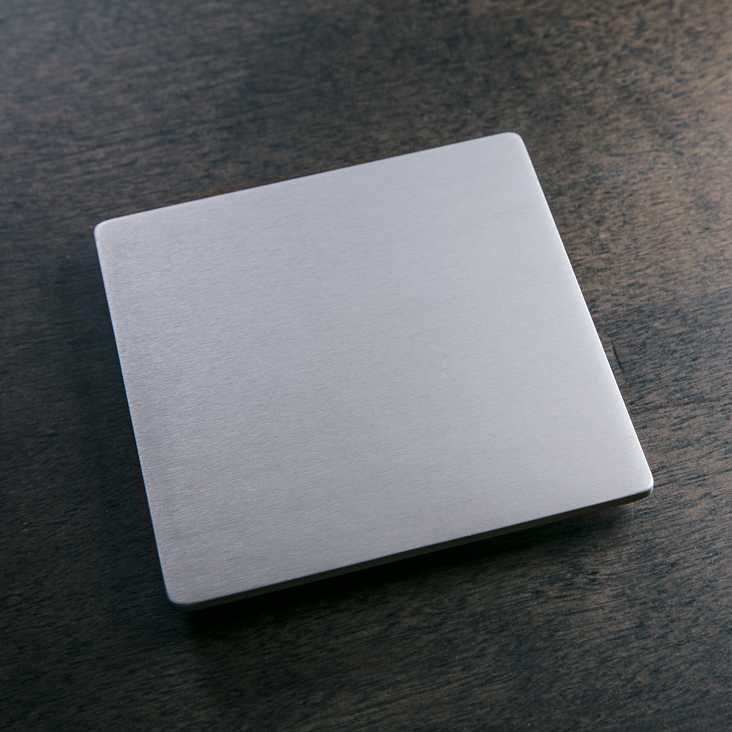 These solid, CNC machined aluminum coasters feature a bold design that sets any beverage apart, and commands attention. With a raised platform, floating metal surface presenting a sophisticated look, these coasters share DNA with high precision standards used in the aerospace and medical industry. Use them to bring an innovative and contemporary twist on a classic accessory to your home.