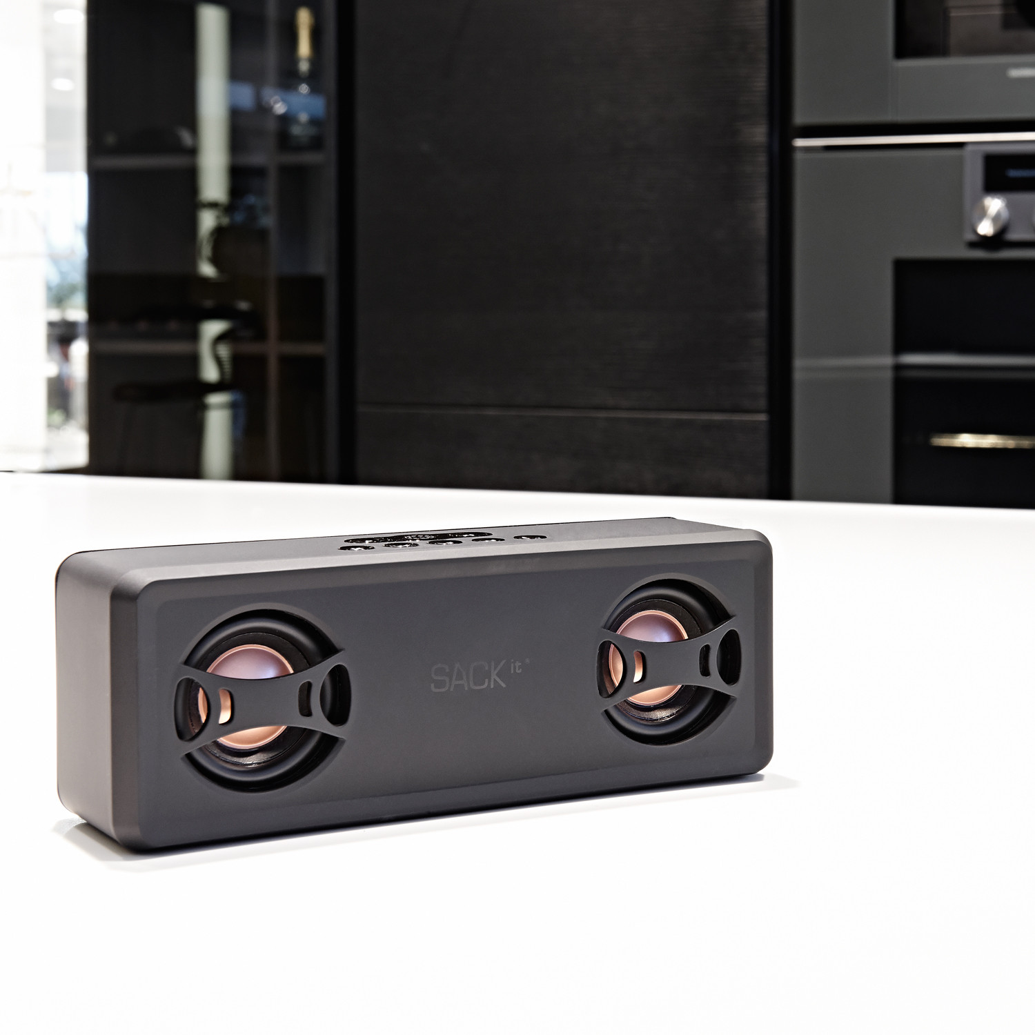 The WOOFit JAM in Midnight Black + Copper Matte is great sound on the go! Use it wirelessly everywhere — or pair two for a double right-and-left-stereo experience. WIth this clever little speaker, you can play music from your smartphone or computer with Bluetooth or NFC. Up to 15 hours on a single charge means the party can go all night long. Or connect it to your pricy Hi-Fi system as a silent receiver for streaming, and revive the old schooler with access to all the music available online. With a ton of volume packed into one portable little body, it's the best sound for its size.