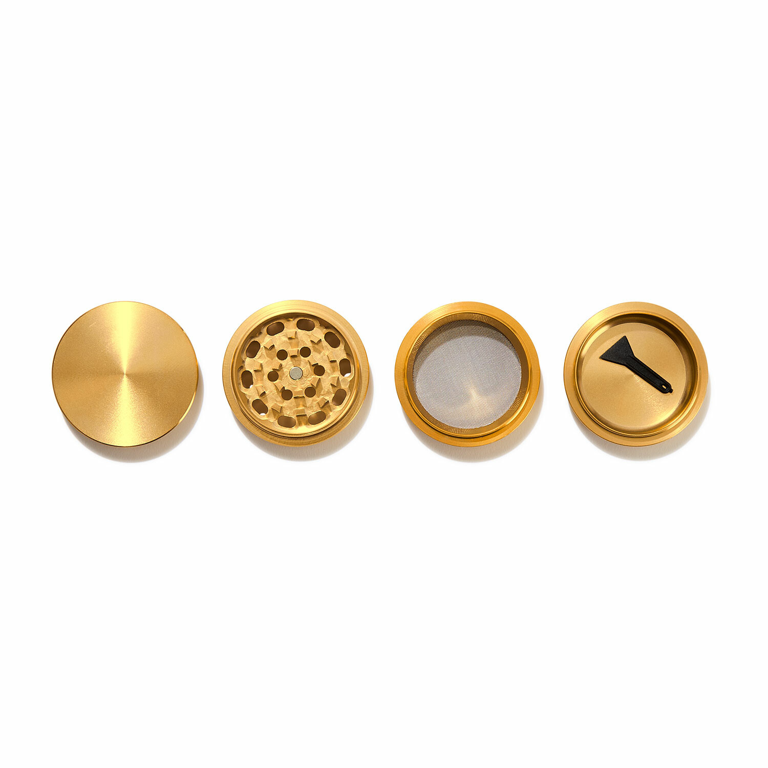 Don't hide away your grinder in shame—show it off with pride. The stunning 4-tier Signature Grinder serves strong looks in soft brushed gold. With four tiers including a mesh kief screen, kief bowl, and diamond-sharp teeth for the perfect fluffy ground flower, it will outperform all others too.