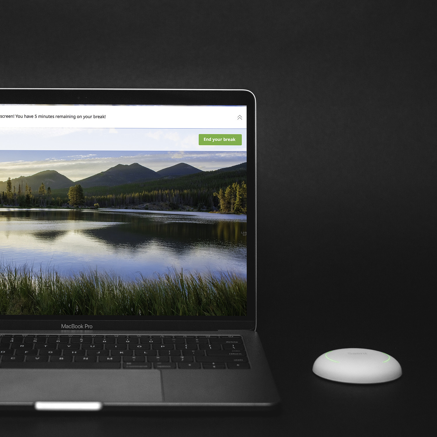 The beautiful, minimal design of the button even looks great on your desk and serves as a “do-not-disturb” sign to those around you. The light halo on the button using colors to count down your focus session progress, letting colleagues know when you're next available. Find your focus and practice mindful productivity, with Saent.