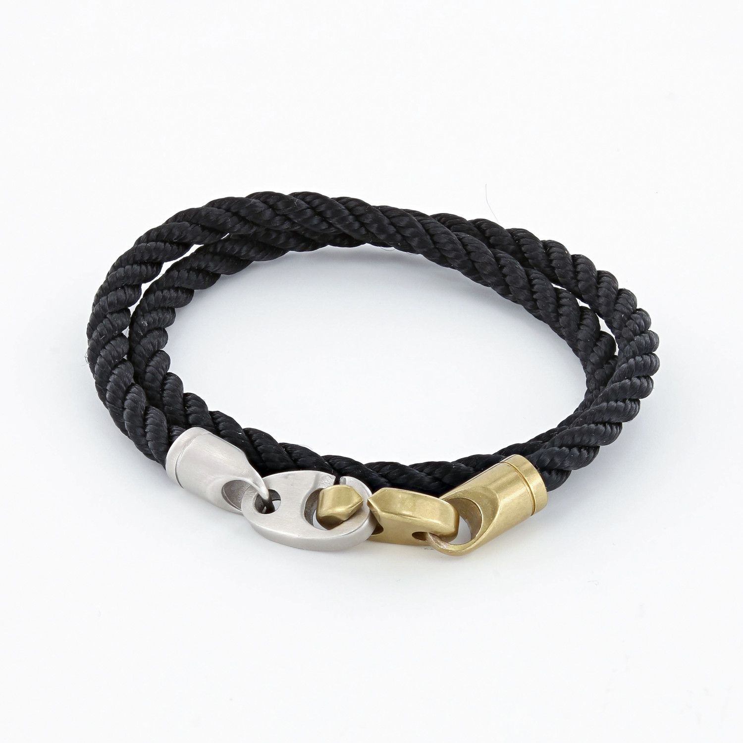 Hang on to that summertime feeling all year long with this collection of chic, nautical inspired accessories. This Brak Double Rope Bracelet fuses textured rope and metal elements for a sophisticated accessory that perfectly transitions from the city to the sea.