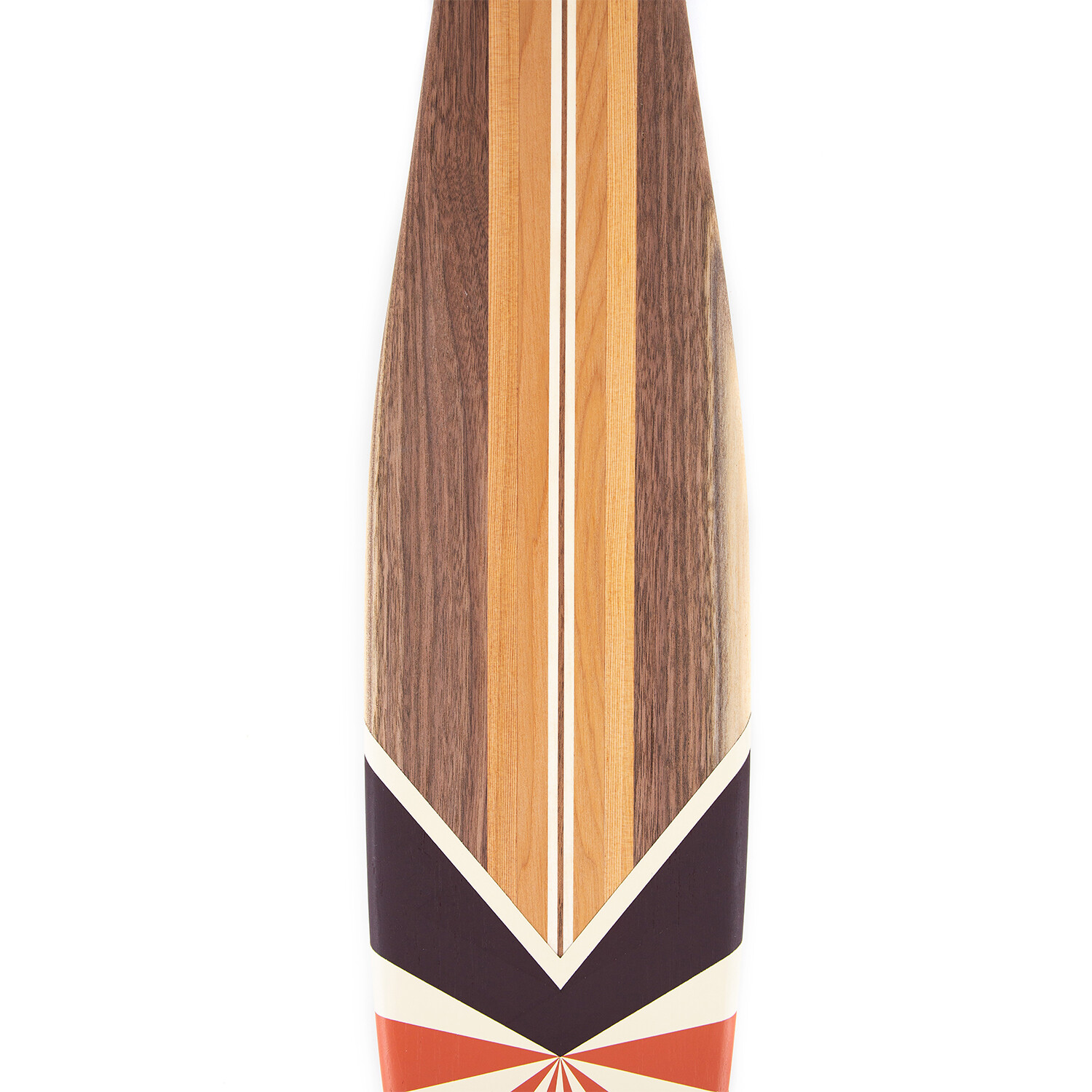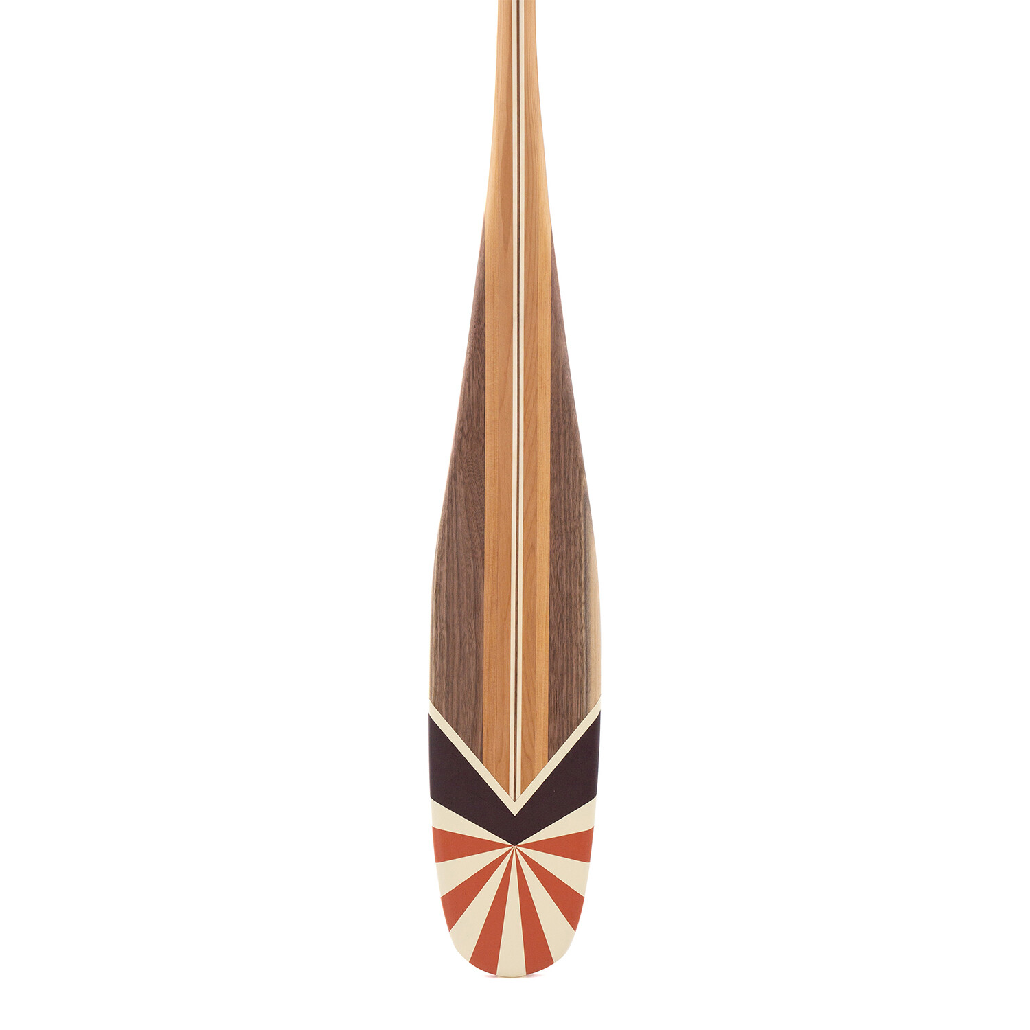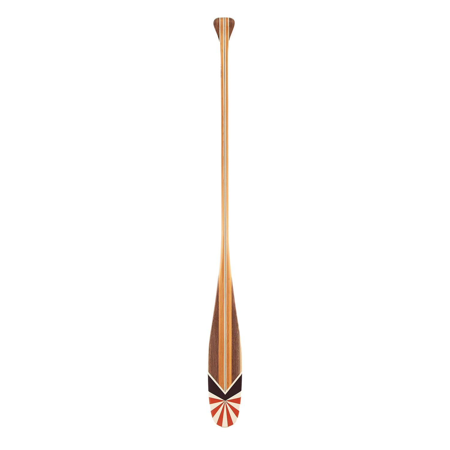This design is painted on the Voyageur Heritage Paddle. With an elegantly traditional blade shape, these are graceful in and out of the water. They’re perfect for lazy turns around the lake or for gracing the wall of your cabin. Each is a laminated combination of white ash, aspen, and red alder.