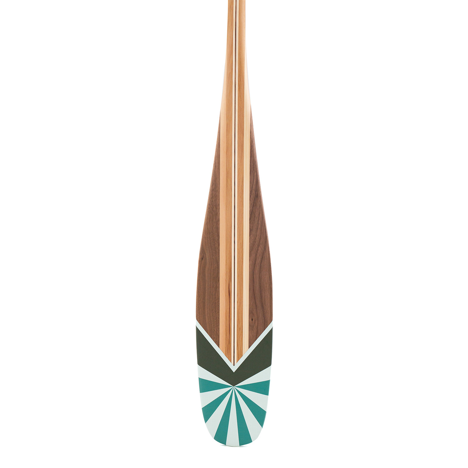 This design is painted on the Voyageur Heritage Paddle. With an elegantly traditional blade shape, these are graceful in and out of the water. They’re perfect for lazy turns around the lake or for gracing the wall of your cabin. Each is a laminated combination of red alder, aspen, and black walnut.