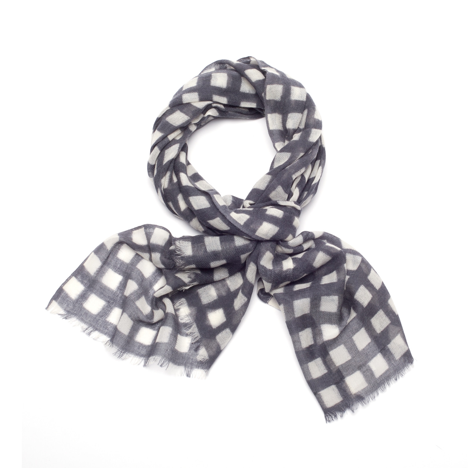In a hand printed, hand dyed, and hand finished wool, Sarah Stewart's line of Checkerboard scarves will combat the cold all year round. These lightweight but warm treasures feature a stylish windowpane check pattern done in a loose weave, a buttery soft finish, and a rugged self-fringed edge.