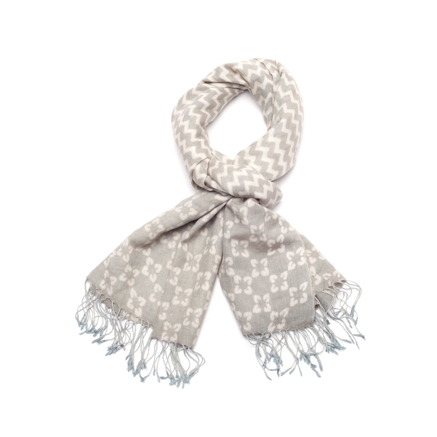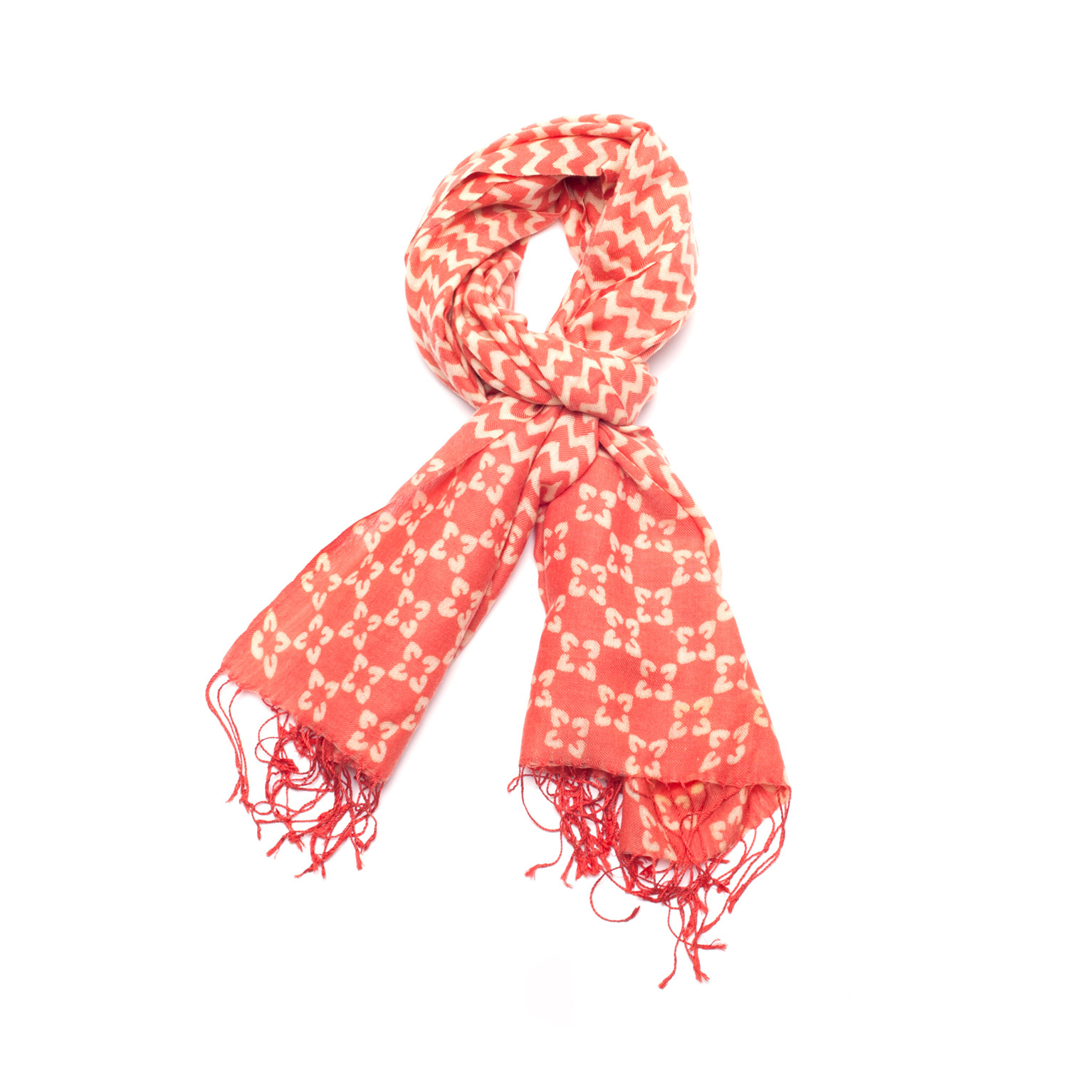 Hand printed, hand dyed, and hand finished, Sarah Stewart's line of scarves will combat the cold all year round. These lightweight but warm Ziggy scarves feature a chevron middle with a floral border, a buttery soft finish, and a tassel edge.