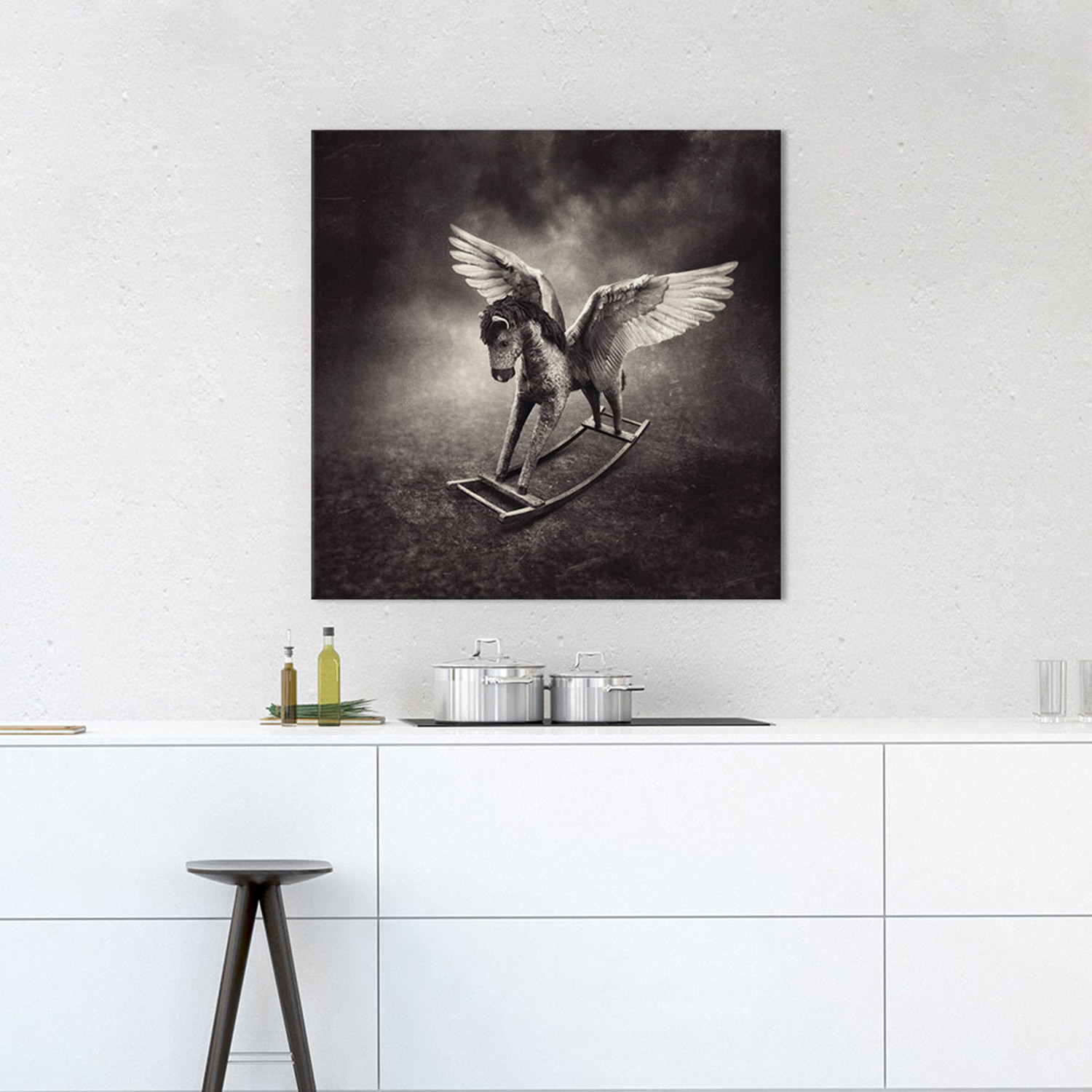 This attention-grabbing canvas print from award-winning photographer and digital manipulator Sarolta Bán is composed with the intention of showing something different to every viewer. Each piece in this collection has a mysterious, glass-like quality that makes everything feel as if it is somehow reflected, and being viewed through thick glass or bright light. It's an intentional, artificial glare that generates an introspective atmosphere to amplify any space.