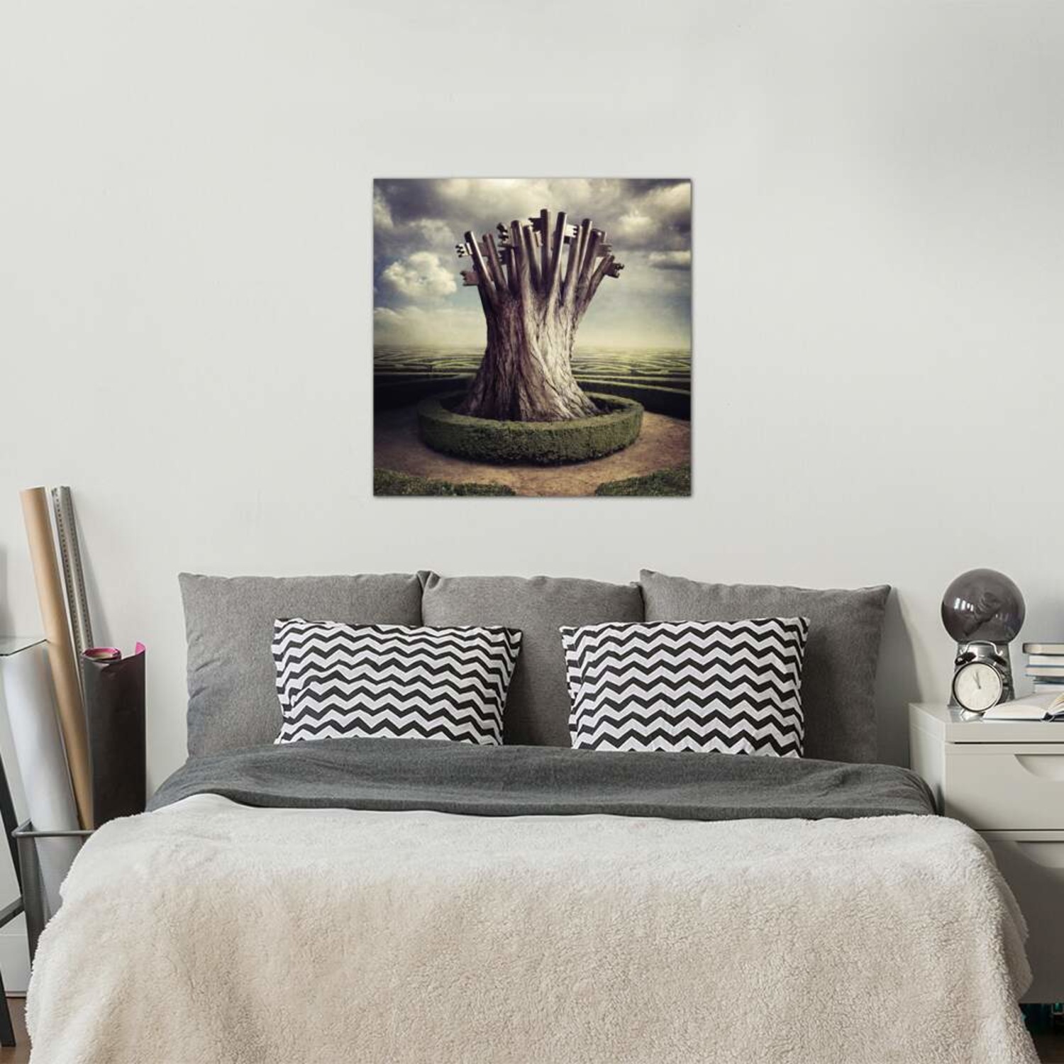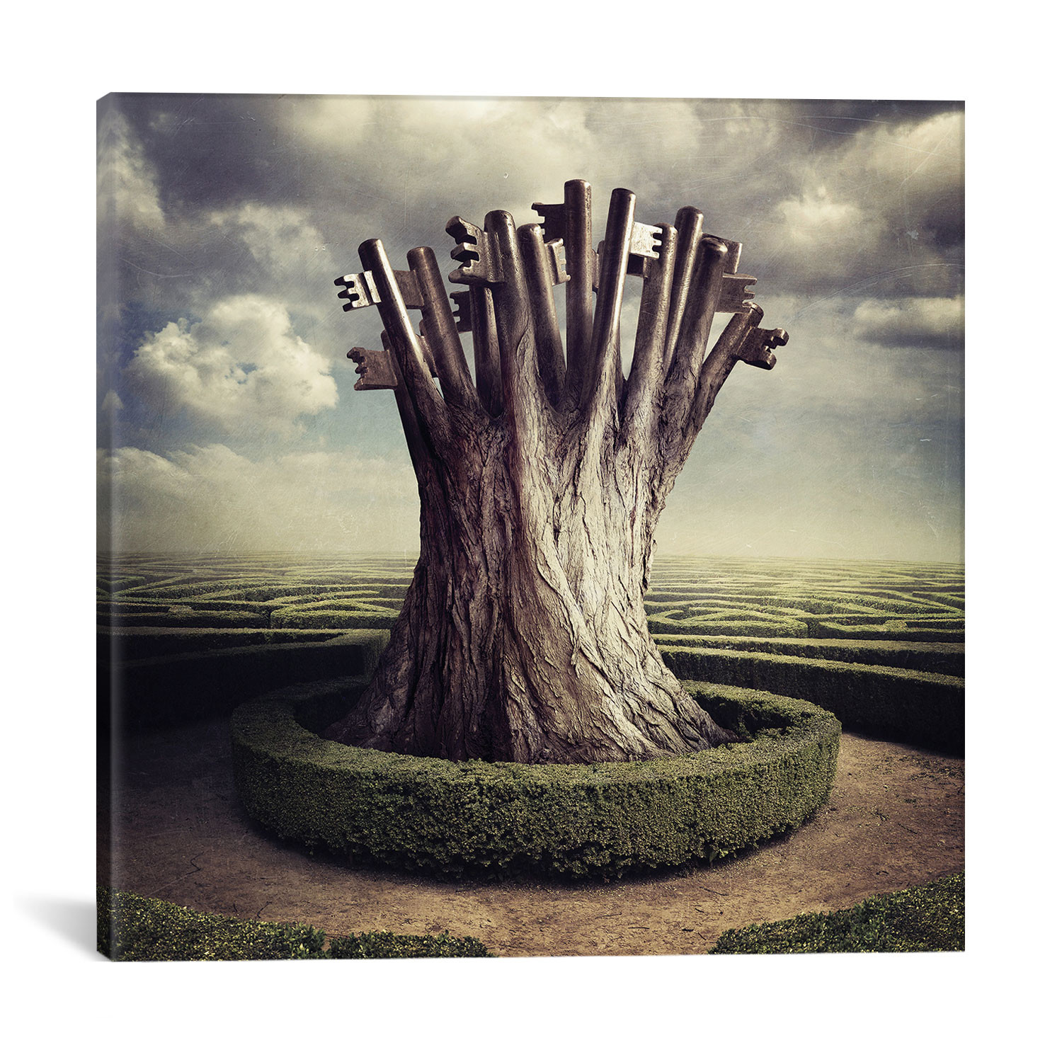 This attention-grabbing canvas print from award-winning photographer and digital manipulator Sarolta Bán is composed with the intention of showing something different to every viewer. Each piece in this collection has a mysterious, glass-like quality that makes everything feel as if it is somehow reflected, and being viewed through thick glass or bright light. It's an intentional, artificial glare that generates an introspective atmosphere to amplify any space.