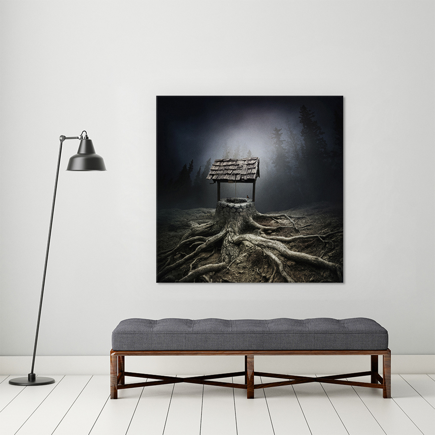 This attention-grabbing canvas print from award-winning photographer and digital manipulator Sarolta Bán is composed with the intention of showing something different to every viewer. Each piece in this collection has a mysterious, glass-like quality that makes everything feel as if it is somehow reflected, and being viewed through thick glass or bright light. It's an intentional, artificial glare that generates an introspective atmosphere to amplify any space.