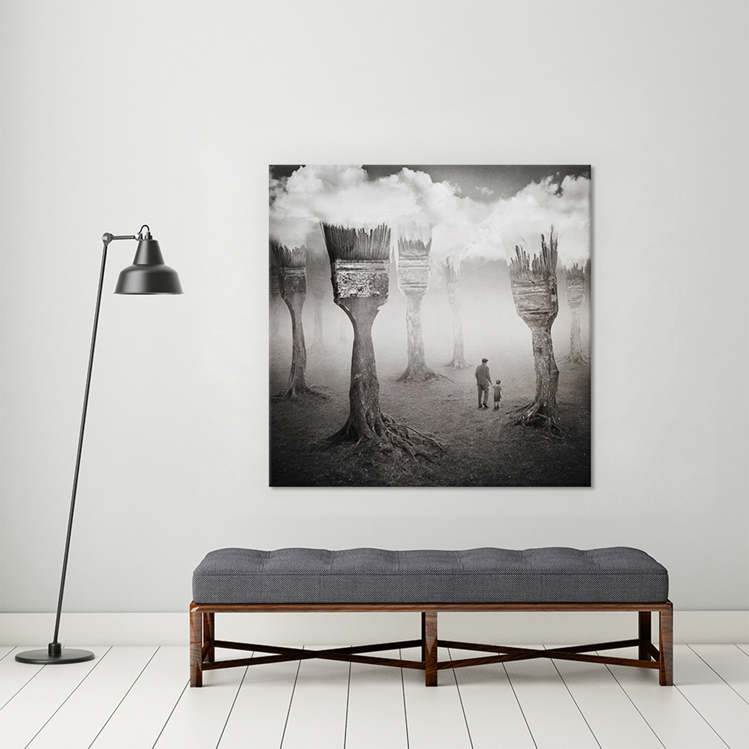 This attention-grabbing canvas print from award-winning photographer and digital manipulator Sarolta Bán is composed with the intention of showing something different to every viewer. Each piece in this collection has a mysterious, glass-like quality that makes everything feel as if it is somehow reflected, and being viewed through thick glass or bright light. It's an intentional, artificial glare that generates an introspective atmosphere to amplify any space.