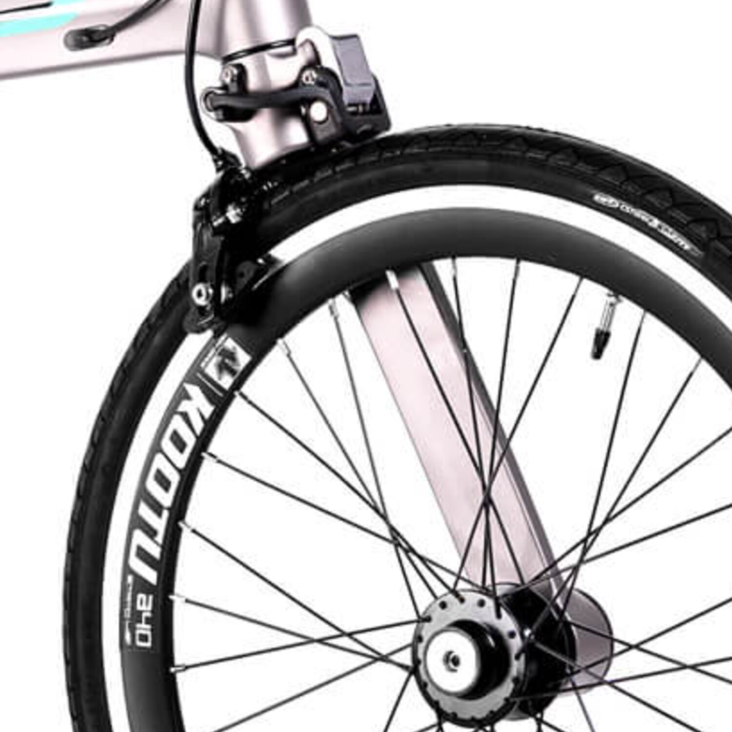 The Sava Folding Z3 Single Arm Folding Bike is designed to get you from point A to point B with ease, then folds up small so you can store it and carry it with you practically anywhere. Featuring an ultra-durable TORAY T800 Carbon Fiber frame and fork, this bike provides the ideal pedaling platform while keeping it lightweight and maneuverable. SHIMANO SORA 9 Speed group sets promise smooth, precise handling so you can ride comfortably on the road and in a variety of urban environments. An adjustable front head tube stem lets you adjust the handlebar height to achieve the most comfortable riding position. And when you're not riding, these Push Assist Wheels allow you to smoothly push the folded bike while you walk so you don't have to pick it up and carry it.