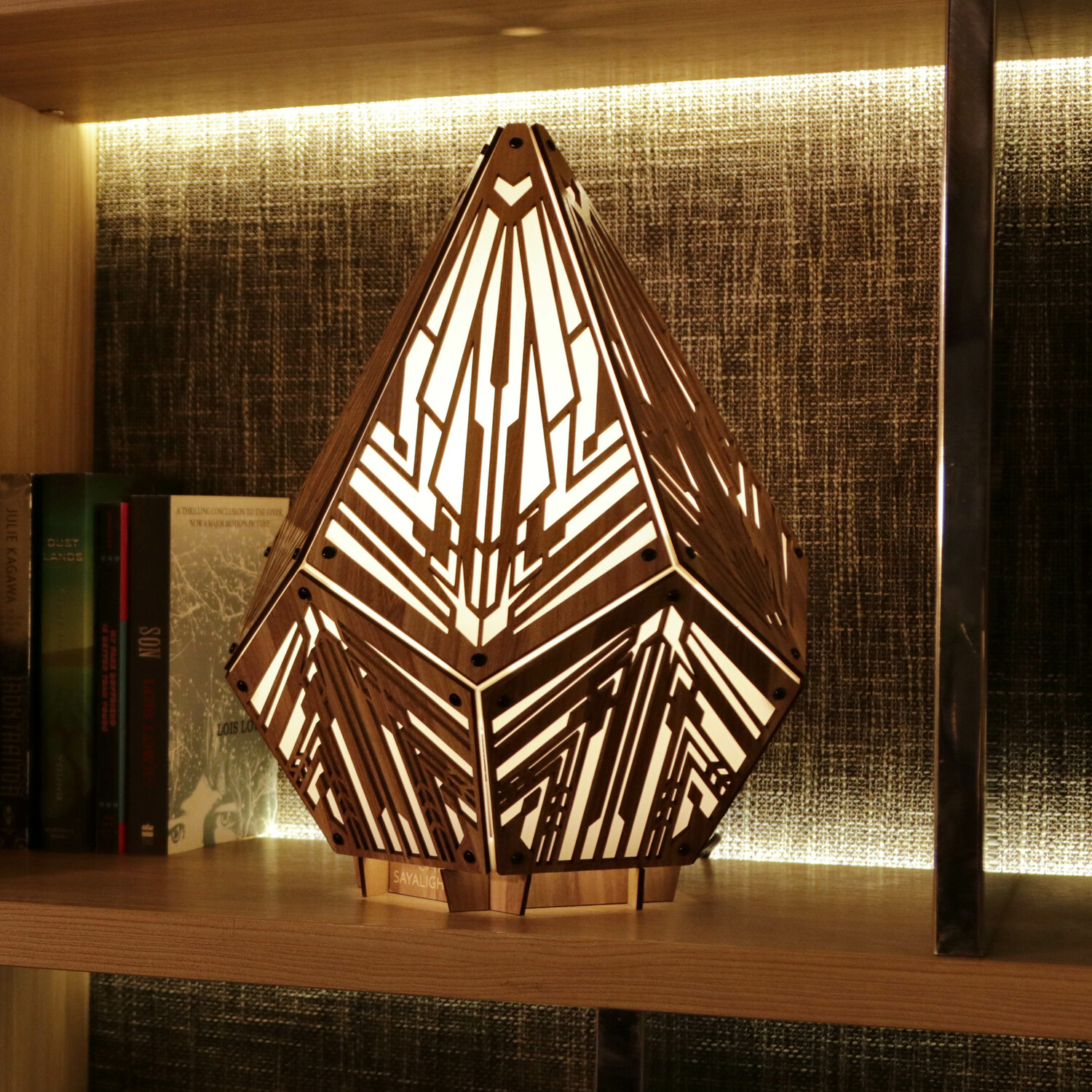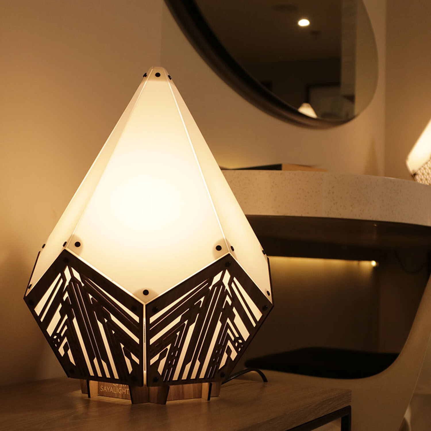 Brighten any space with the eye-catching design of SAYA Light's SINAR. Made using recycled wood and strong materials, SAYA Light’s transformable lighting system lets you create the perfect lighting for any mood. Use the carved wood panels to cast stunning geometric light arrays throughout your space. Swap them out for the acrylic panels when you want more brilliant illumination for reading, or mix and match them both in over 100 different ways for diffused light that's warm and inviting. This set packs flat and is easy to assemble (and reassemble) in minutes.