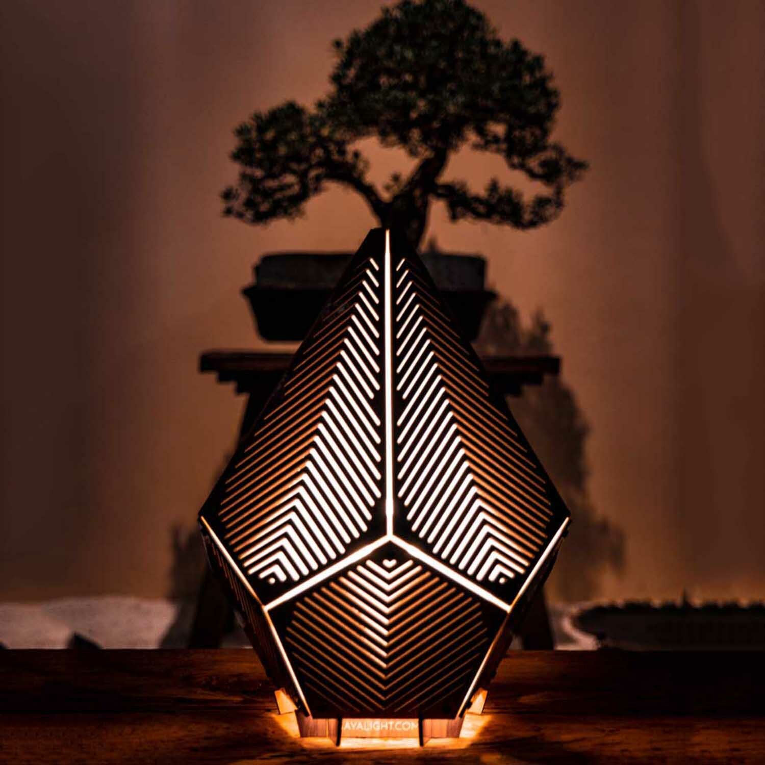Brighten any space with the eye-catching design of SAYA Light's SINAR. Made using recycled wood and strong materials, SAYA Light’s transformable lighting system lets you create the perfect lighting for any mood. Use the carved wood panels to cast stunning geometric light arrays throughout your space. Swap them out for the acrylic panels when you want more brilliant illumination for reading, or mix and match them both in over 100 different ways for diffused light that's warm and inviting. This set packs flat and is easy to assemble (and reassemble) in minutes.