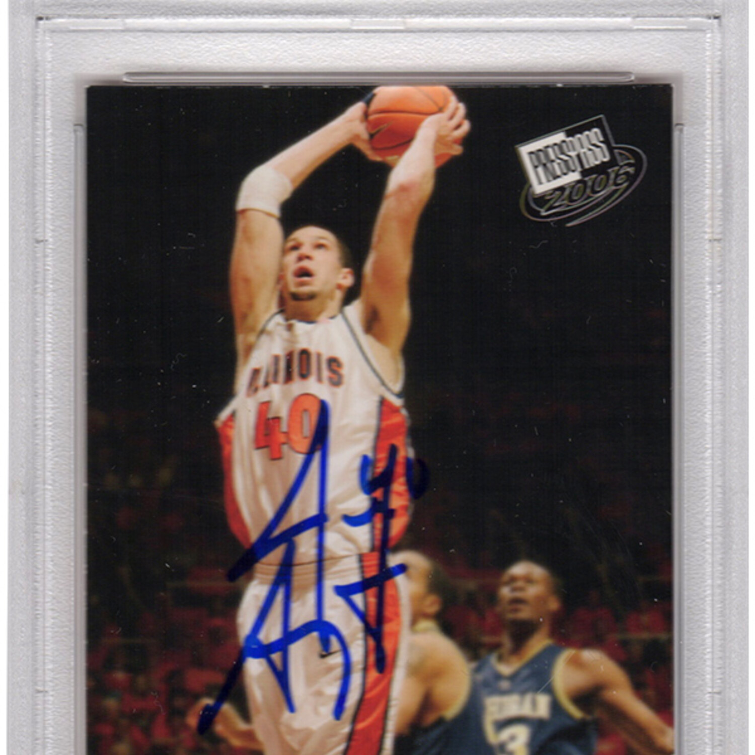 James Augustine signed Illinois Fighting Illini 2006 Press Pass gold rookie basketball trading card #G4. The card has been authenticated and encapsulated by PSA/DNA and the number can be verified online.