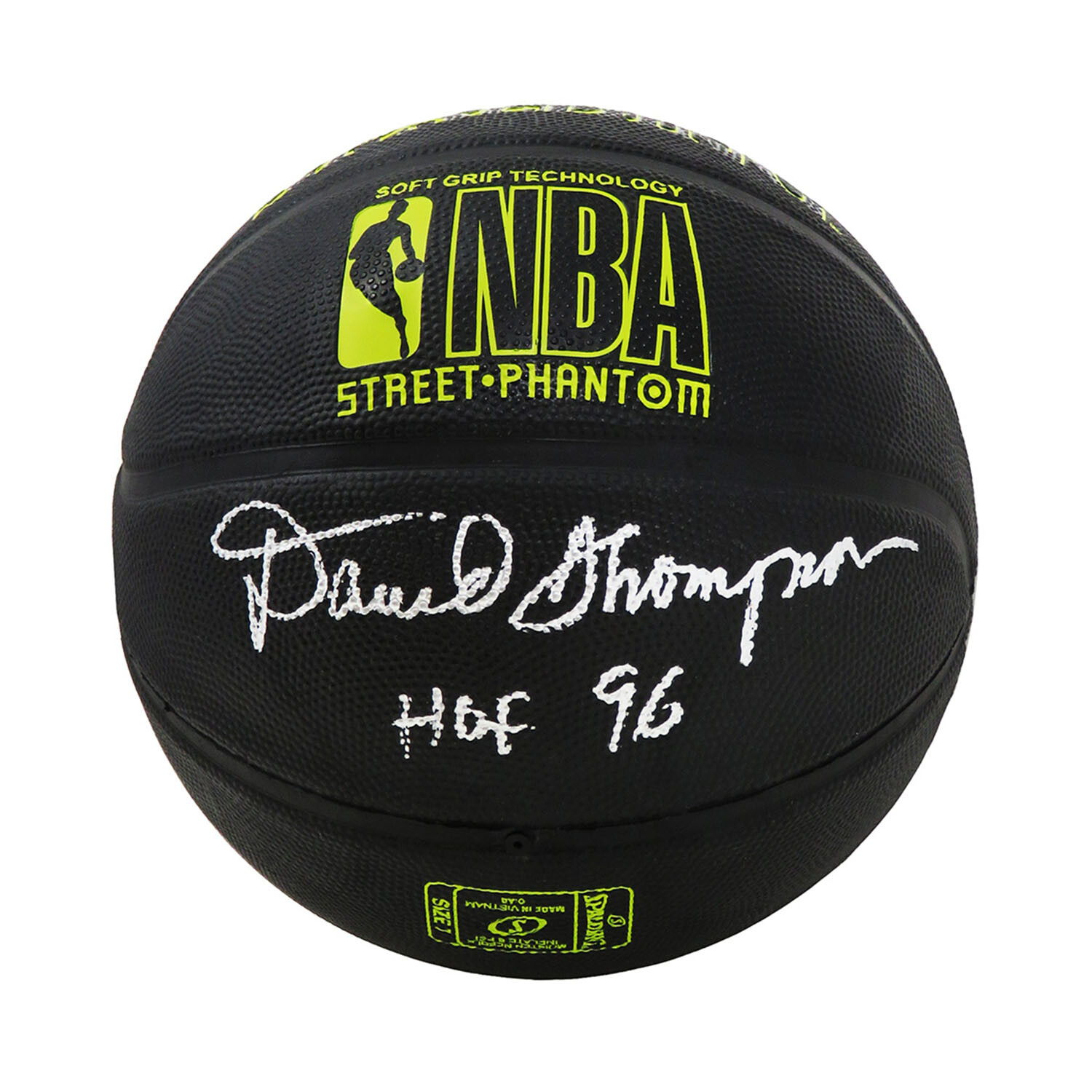 David Thompson // Signed Spalding NBA Basketball // "HOF'96" Inscription // Phantom Black + Yellow Lettering