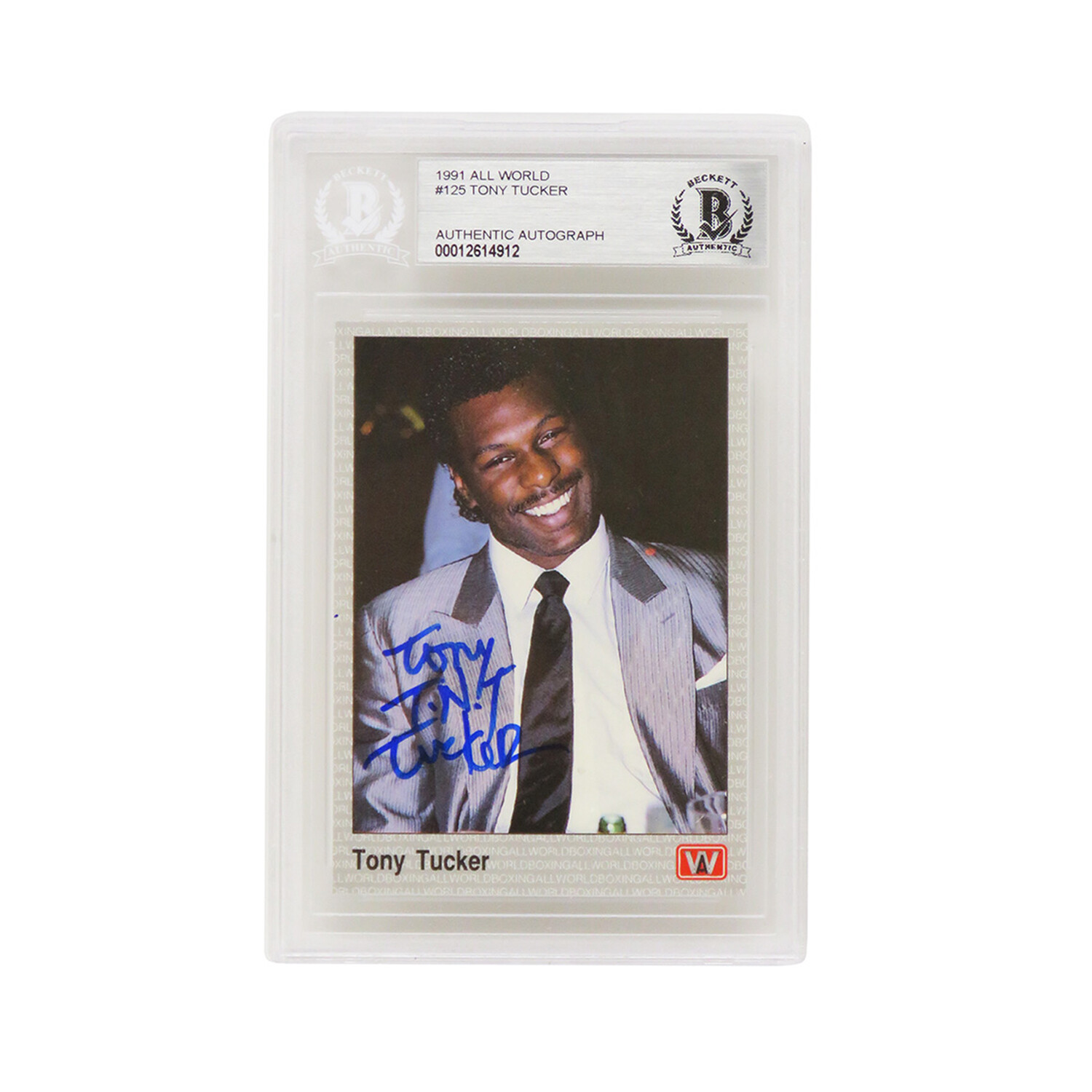 Tony Tucker // Signed 1991 All World Boxing Trading Card #125 // "TNT" Inscription // Beckett Encapsulated