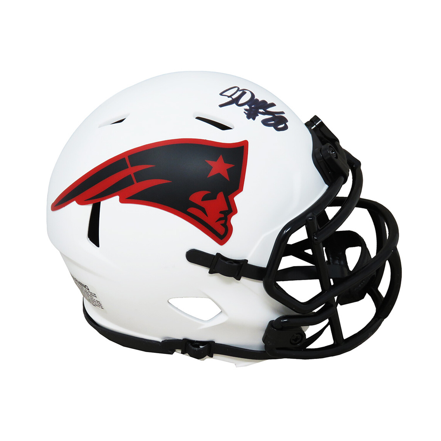 Corey Dillon // Signed New England Patriots Lunar Eclipse White Matte Riddell Speed Mini Helmet