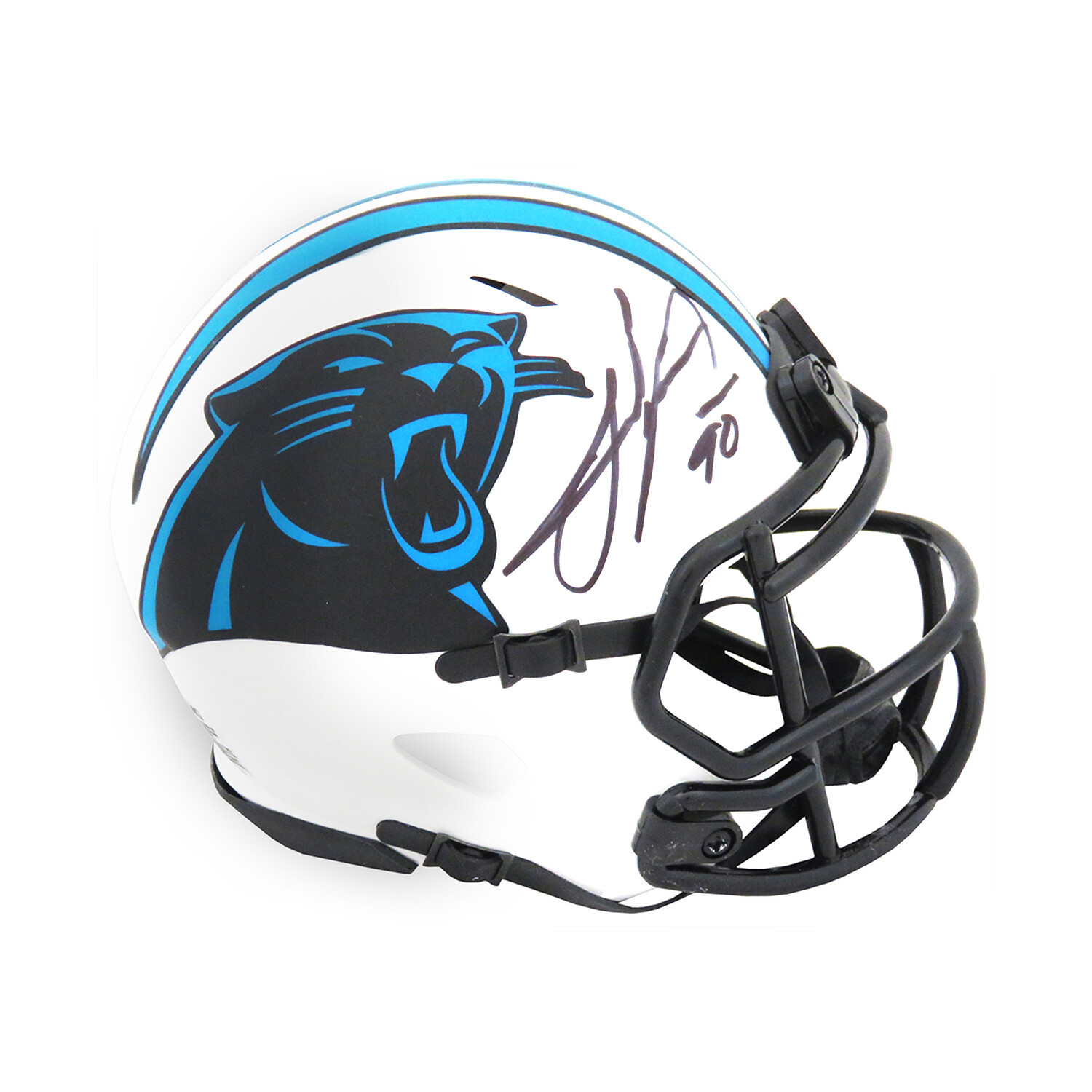 Julius Peppers // Signed Carolina Panthers Lunar Eclipse White Matte Riddell Speed Mini Helmet
