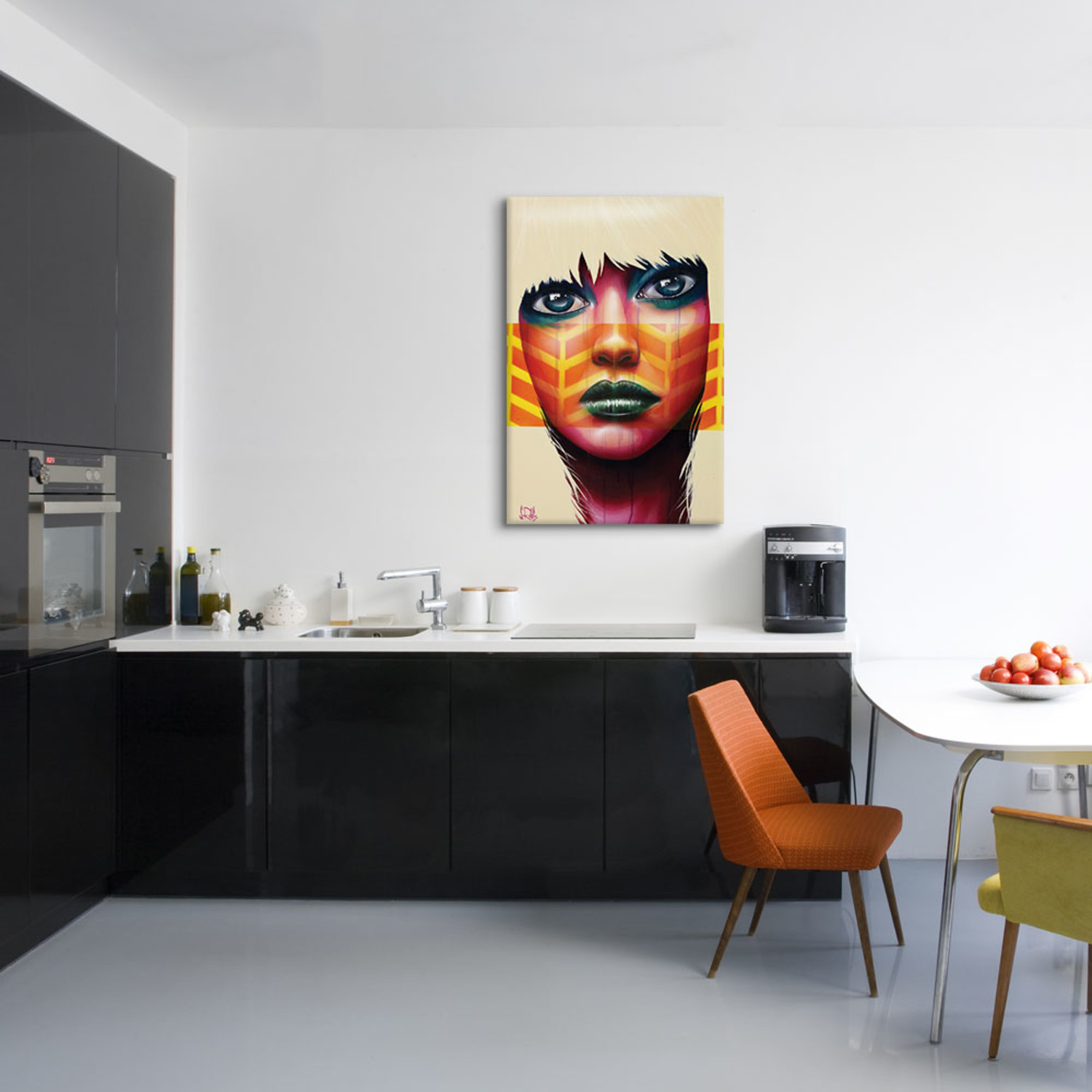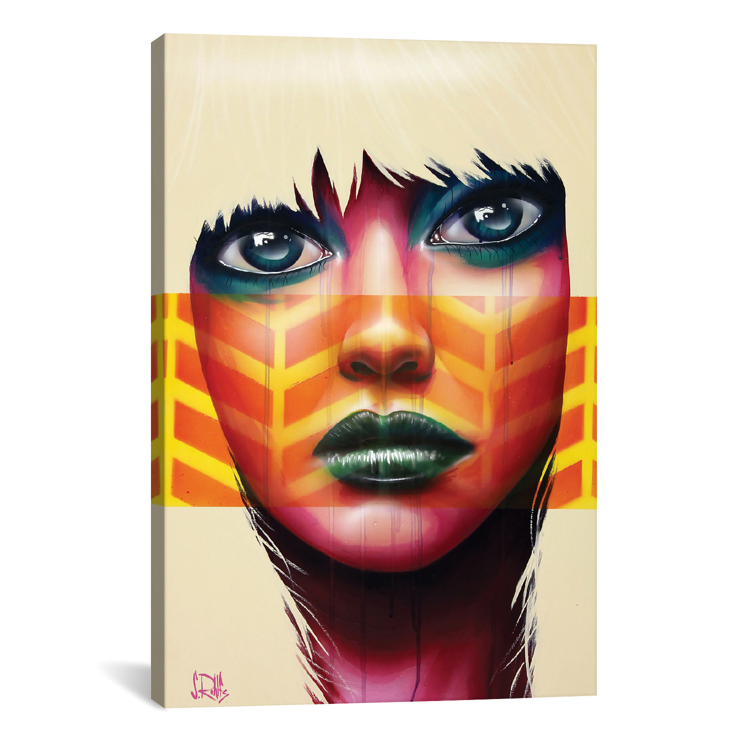 Inspired by motifs from street art, graphic novels, and simply the feminine form, this canvas print from Scott Rohlfs is reminiscent of comic books and retro art style, crafted in tandem with high fashion. Boasting vivid colors and recognizable images, hanging one in your home will invoke nostalgia, beauty and an edgy aesthetic that everyone will talk about.