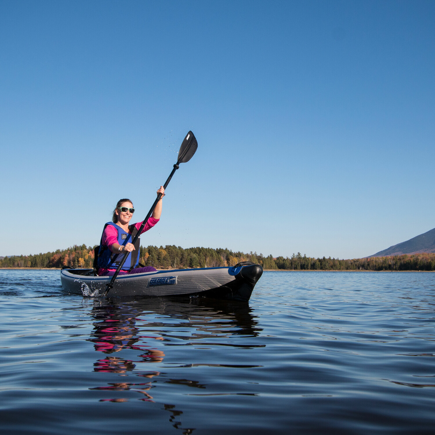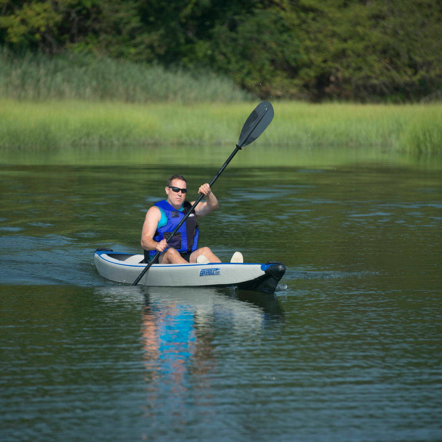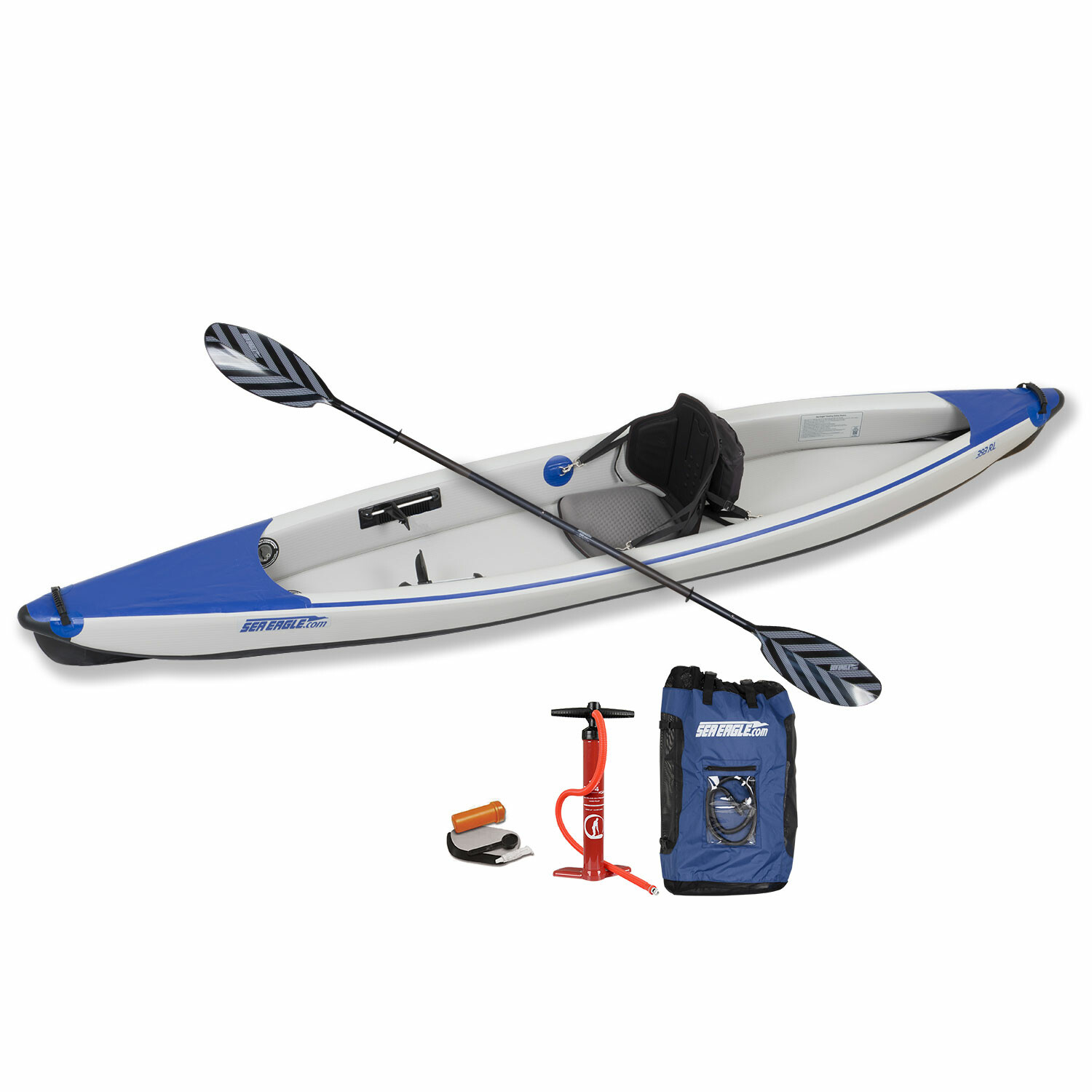 The Sea Eagle® RazorLite™ 393rl is the world's first all drop stitch inflatable kayak. It is a lightweight, low profile high-performance solo kayak for the adventurer. The razor-sharp, tapered, hard-nose bow and stern combine with Drop Stitch technology for a hull that enables the kayak to cut through waves cleaner, straighter and sharper than any other kayak on the market.