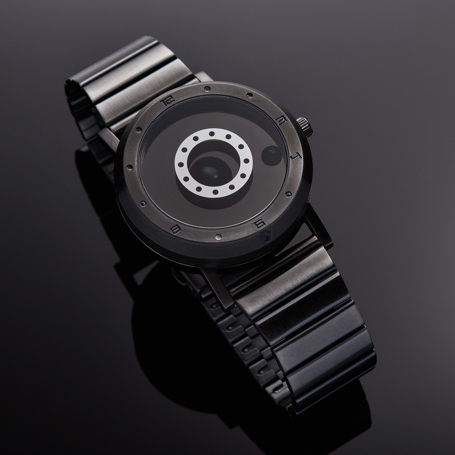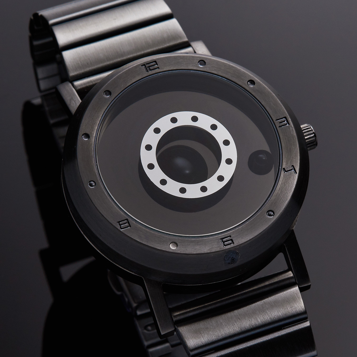 Inspired in part by the Terminator movies, the stainless steel black Seahope Liquid Watch is the world's first liquid metal display watch. Using 'Metallium,' a material developed over years of research, the liquid display changes shape freely and then stops at the position of the time. Some of the liquid metal stops at the hour and some at the minute to reveal the time. The Japanese-made Liquid Watch is a cutting-edge, futuristic timepiece that will stop your friends in their tracks.
