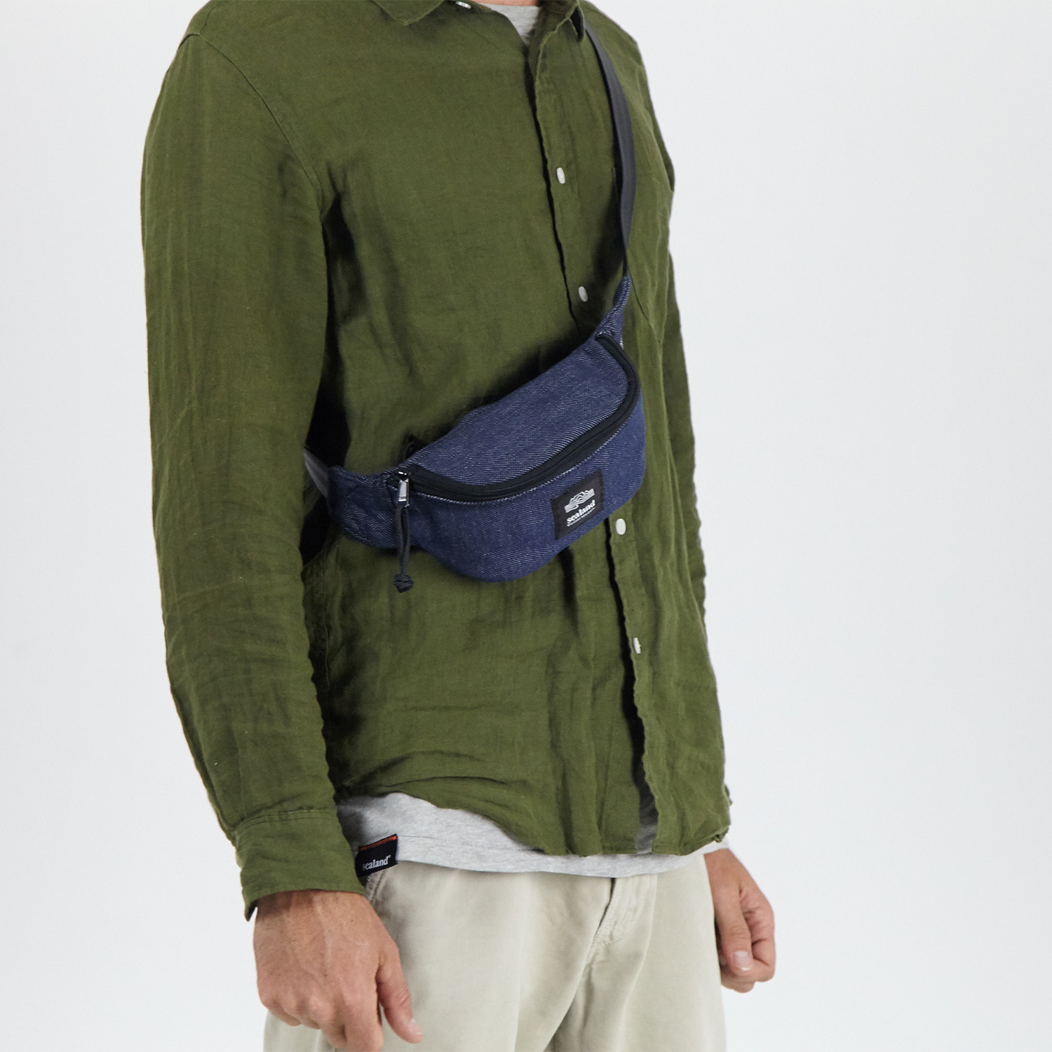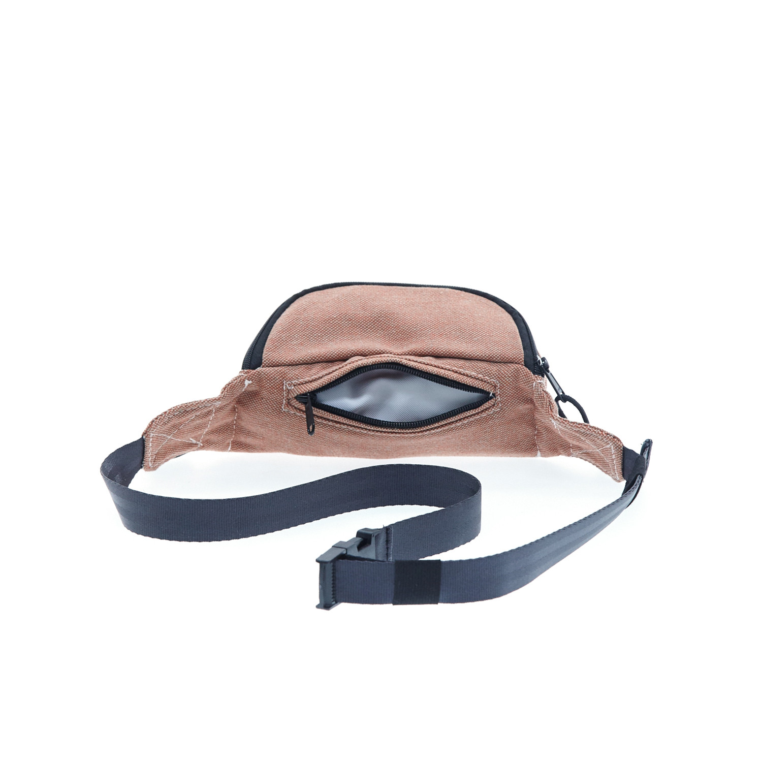 Moon is an easily accessible strap pouch designed to keep your most important goods close at hand. Each one is constructed from an incredibly durable and environmentally friendly blend of recycled plastic bottles and upcycled cotton waste, and features an adjustable strap allows you to easily and comfortably wear it over the shoulder or around your waist. Compact and convenient, its equipped with a large zippered main compartment and zippered back pocket to keep your valuables secure and organized.