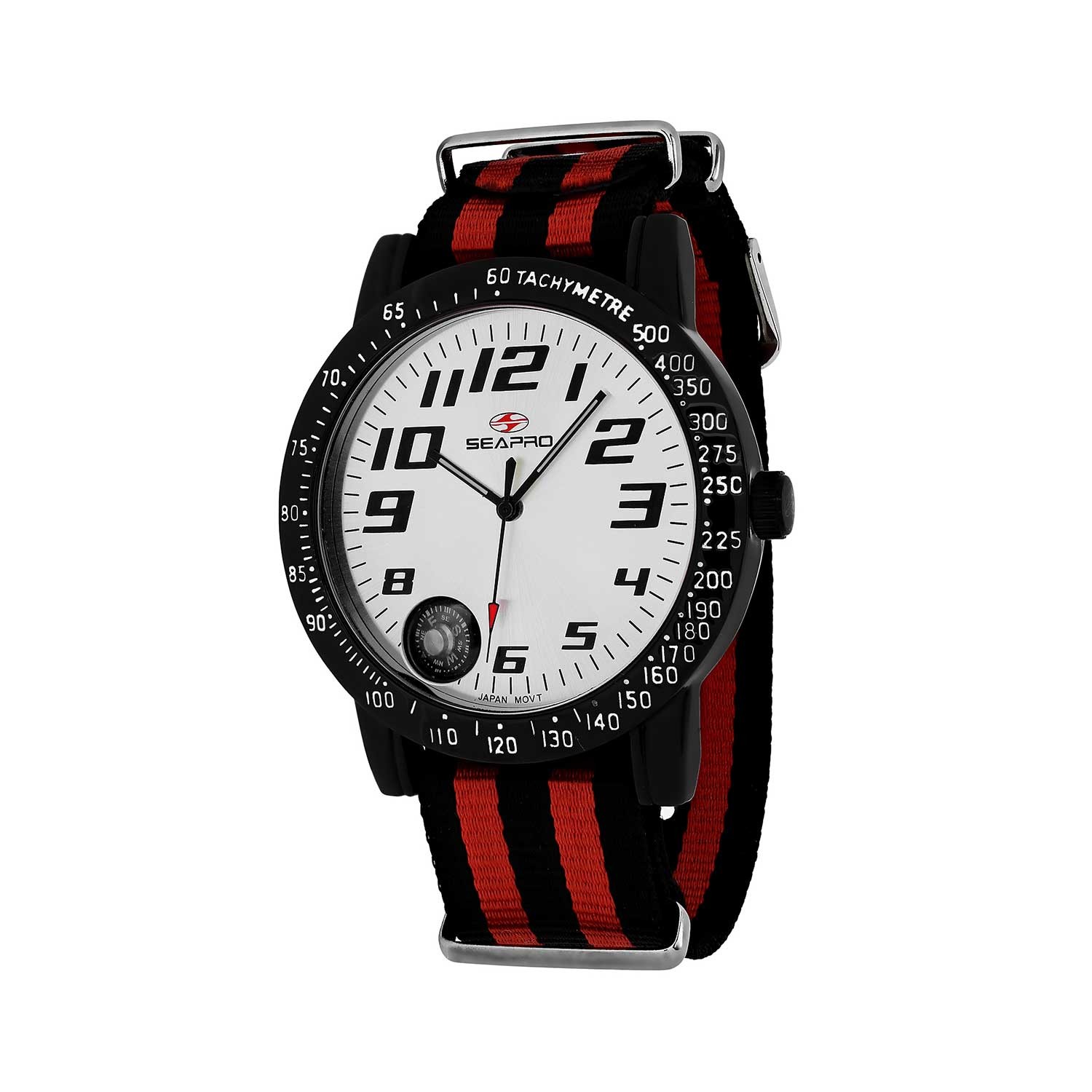 With an alloy case, nylon strap, and a white dial, the Seapro Raceway Quartz is scratch-resistant, water resistant up to 30 Meters, and perfect as a gift or for any watch or car enthusiast.