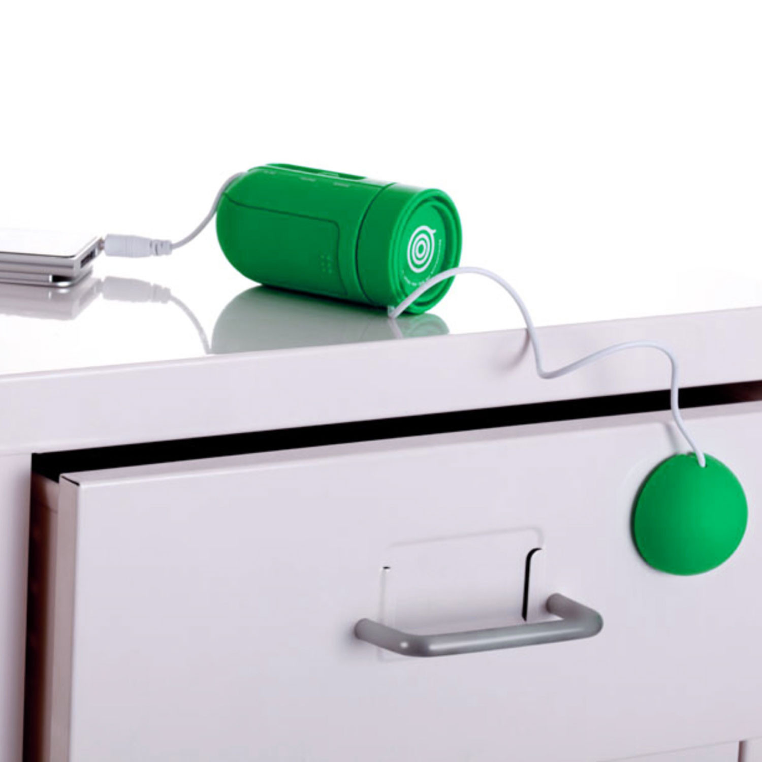 This is the SoundVibe, an exciting speaker system that turns anything that can vibrate into a speaker. Try it out on your surfboard, snowboard, window, guitar, umbrella, fridge, lampshade, garbage can... anything within reach. If it's hollow or able to vibrate, it can become your new speaker system@ Just stick it on and enjoy your favorite songs, anywhere and with any thing.