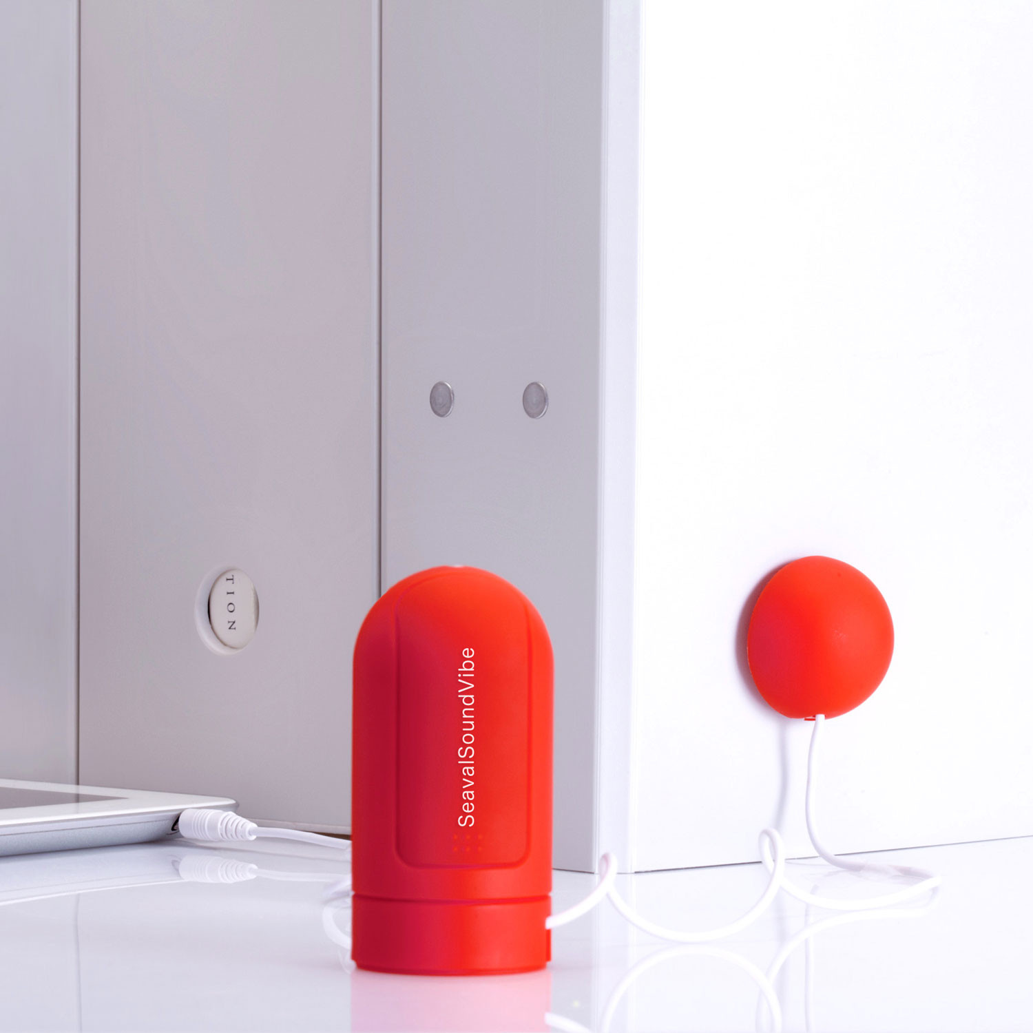 This is the SoundVibe, an exciting speaker system that turns anything that can vibrate into a speaker. Try it out on your surfboard, snowboard, window, guitar, umbrella, fridge, lampshade, garbage can... anything within reach. If it's hollow or able to vibrate, it can become your new speaker system@ Just stick it on and enjoy your favorite songs, anywhere and with any thing.