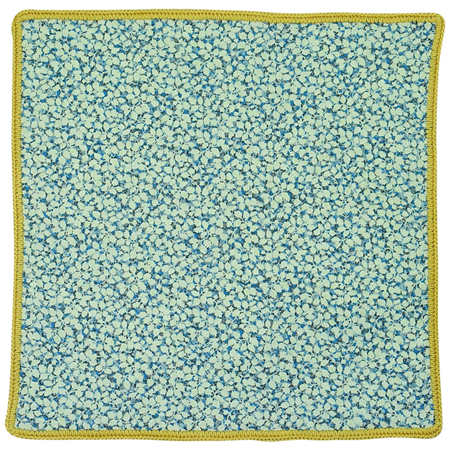 Floral Ceruleo Pocket Square // Mustard Yellow Border