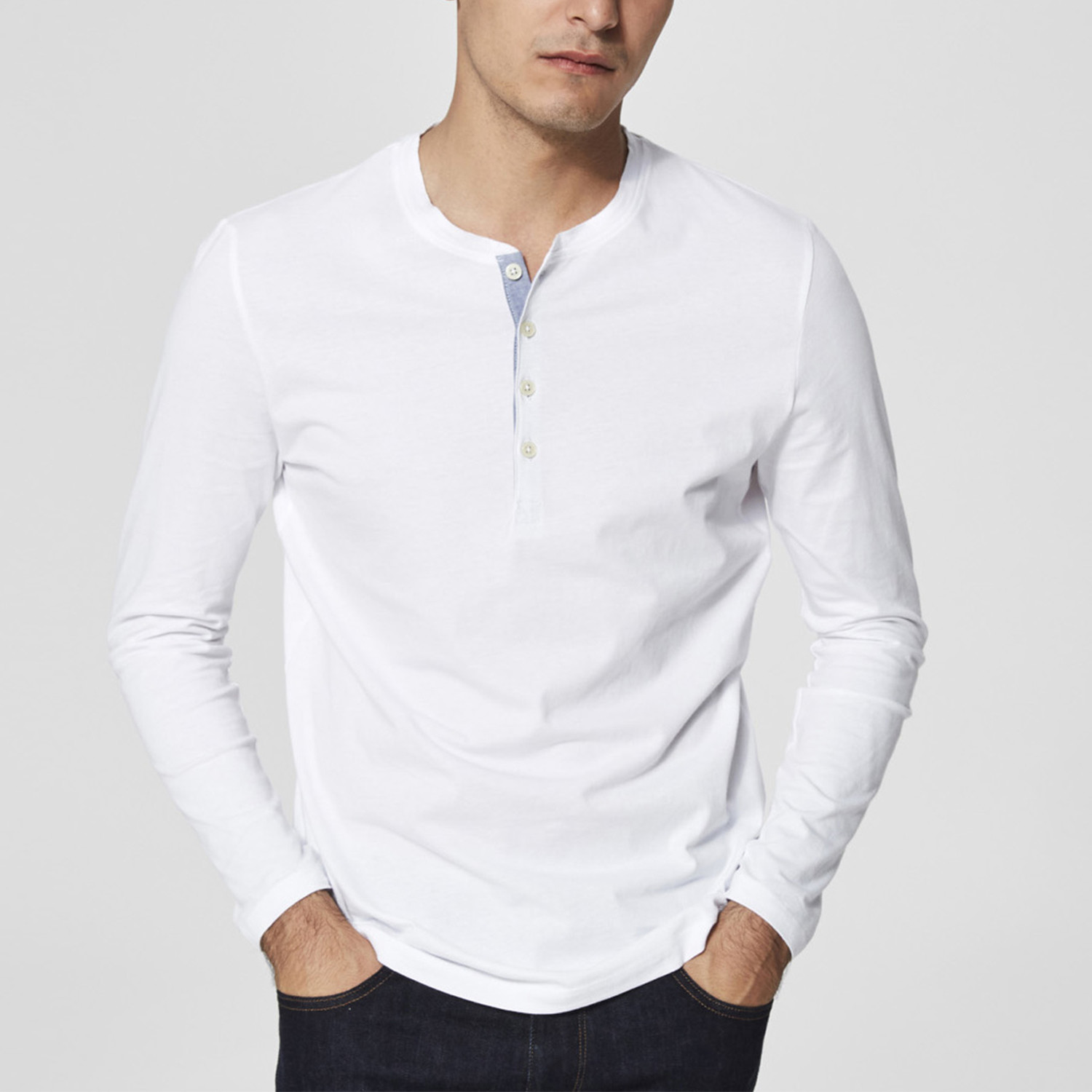 Niklas Long Sleeve Split Neck Henley // Bright White