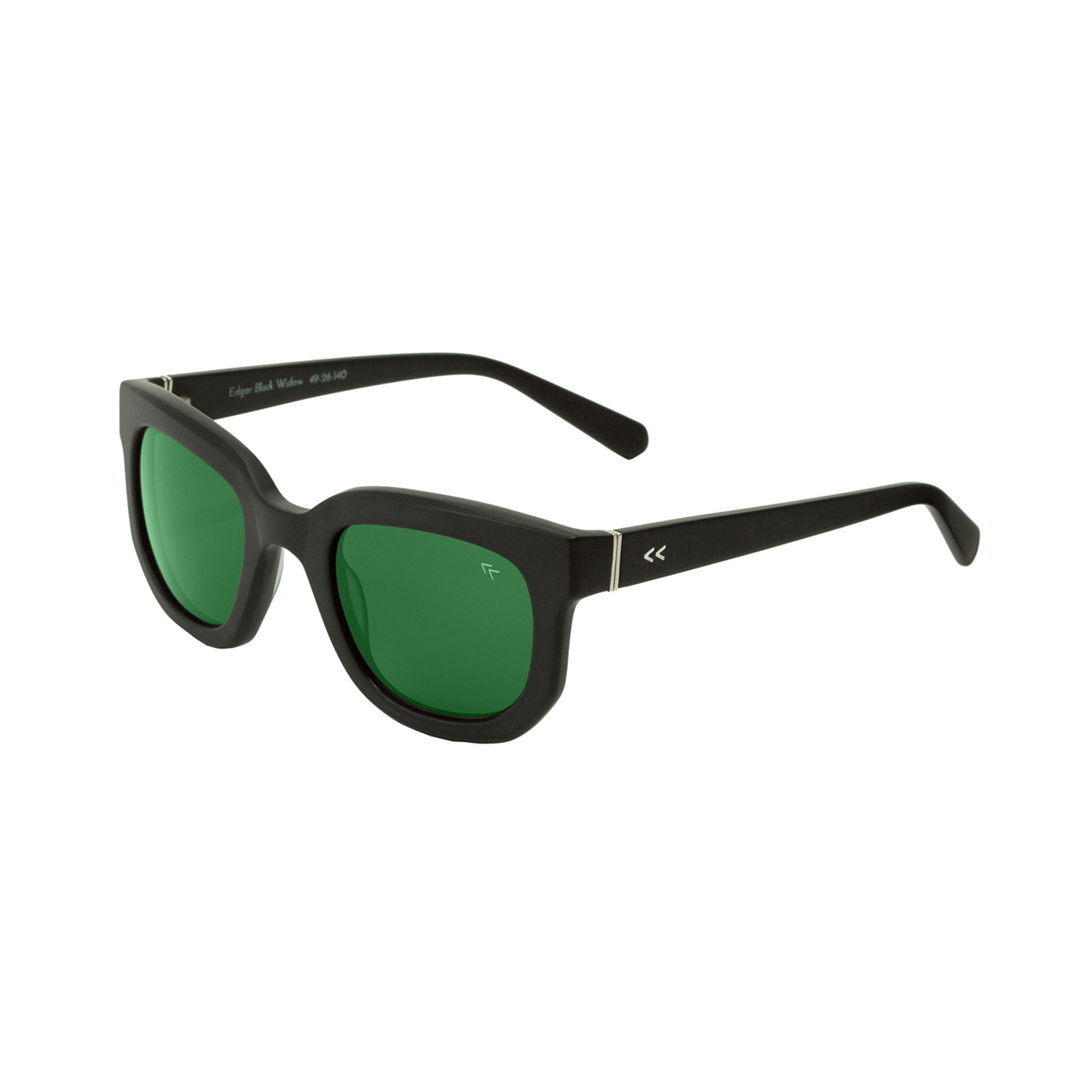 The Black Matte Edgar is a cool, clean unisex structure of heavy acetate and saddle bridge with a solid, chunky mod feel. Its smooth shape features thick lines and a Clark Kent spirit, complete with the super protection of polarized lenses.