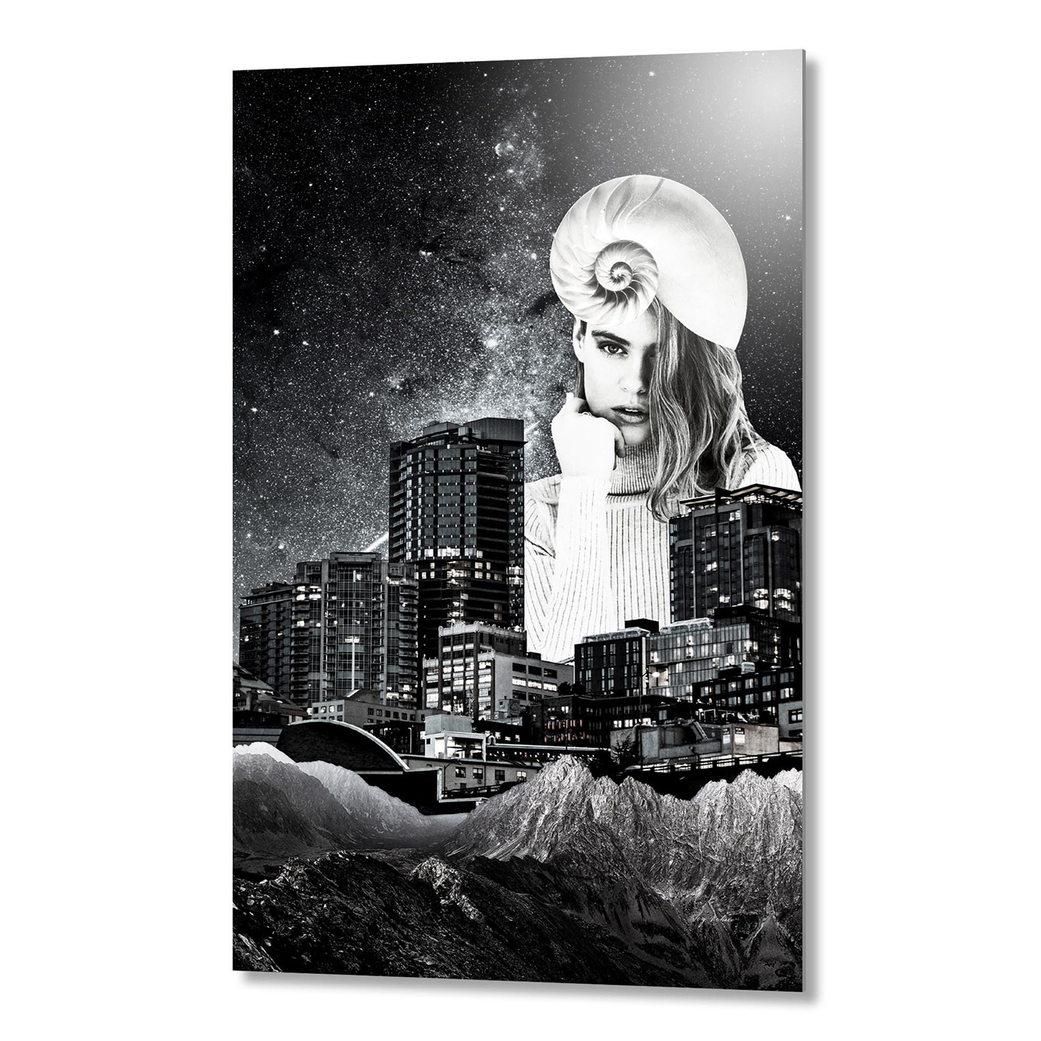 Dive into the surrealist world of Russian artist Serg Nehaev and his fantastical, dreamlike multimedia prints. His unique and thought provoking collages present a fantasy world in dynamic, monochromatic detail, overlaying portrait and landscape photography in other worldy, idiosyncratic arrangements meant to inspire your imagination. Each piece is printed on artist quality aluminum sheet, which has been numbered and signed by the artist himself. Infuse your space with a bit of offbeat creativity and get lost in his eccentric style with this impressive collection of ready to hang wall art.