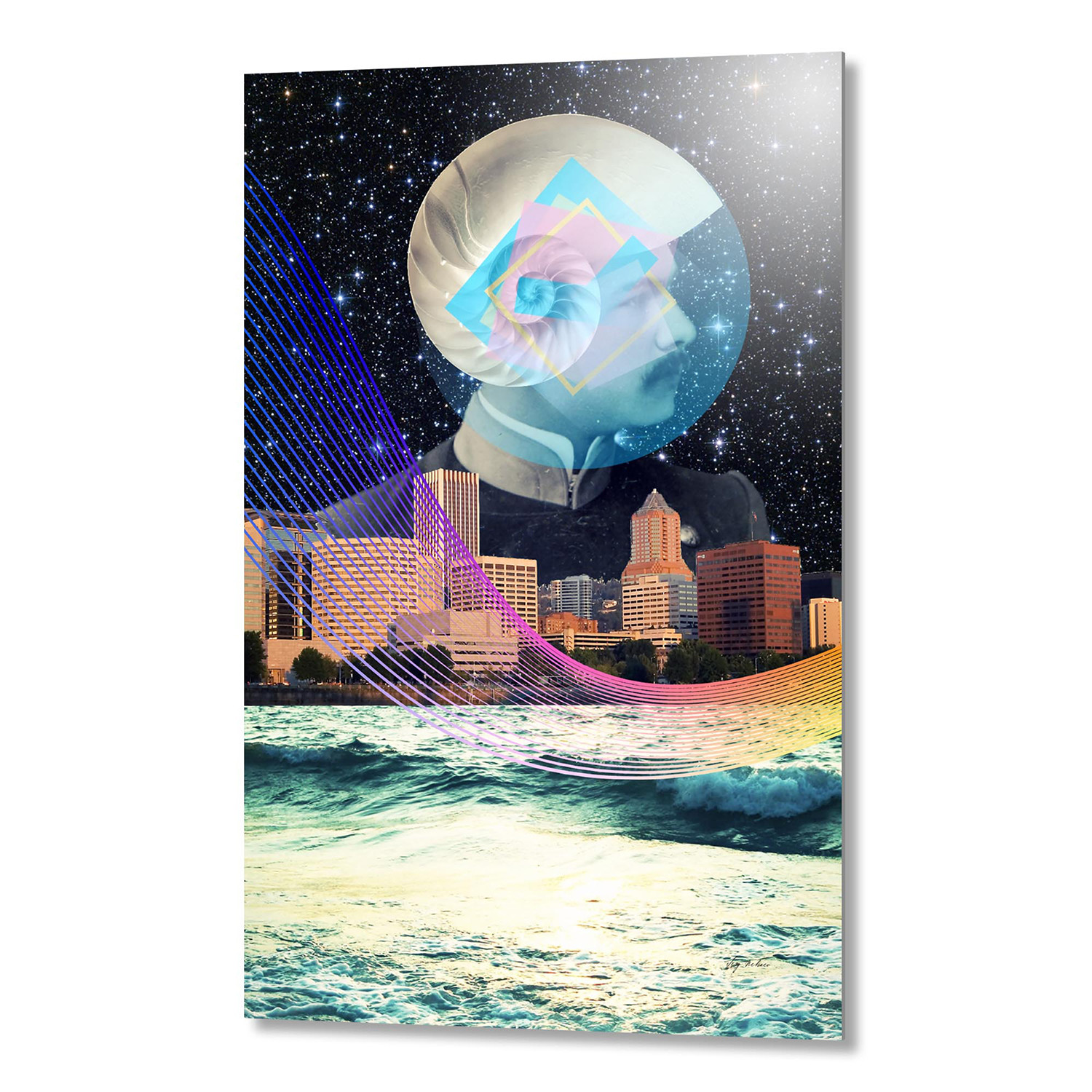 Dive into the surrealist world of Russian artist Serg Nehaev and his fantastical, dreamlike multimedia prints. His unique and thought provoking collages present a fantasy world in dynamic, monochromatic detail, overlaying portrait and landscape photography in other worldy, idiosyncratic arrangements meant to inspire your imagination. Each piece is printed on artist quality aluminum sheet, which has been numbered and signed by the artist himself. Infuse your space with a bit of offbeat creativity and get lost in his eccentric style with this impressive collection of ready to hang wall art.