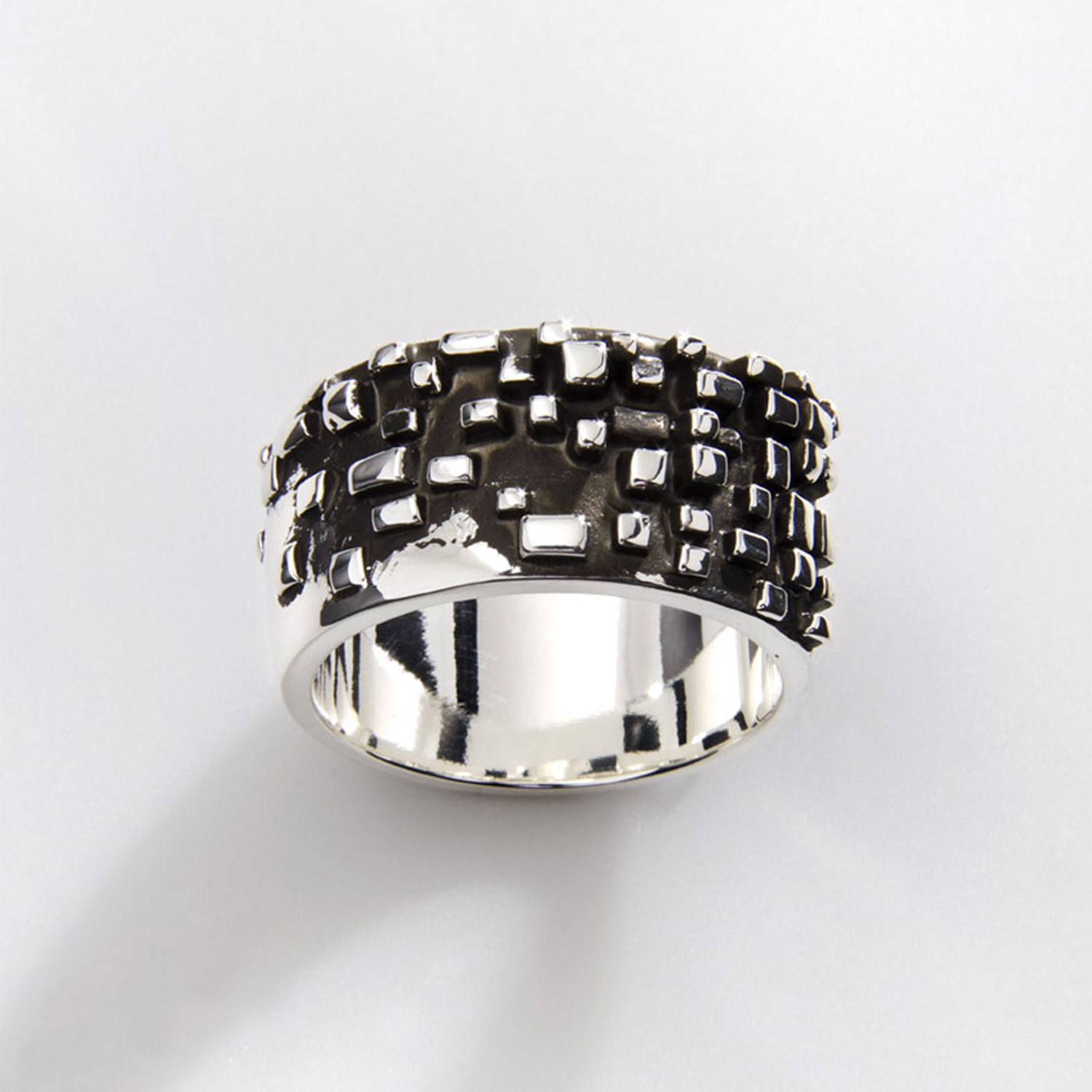 Crafted entirely by hand, this silver piece looks like the abstract version of a city skyline from above.