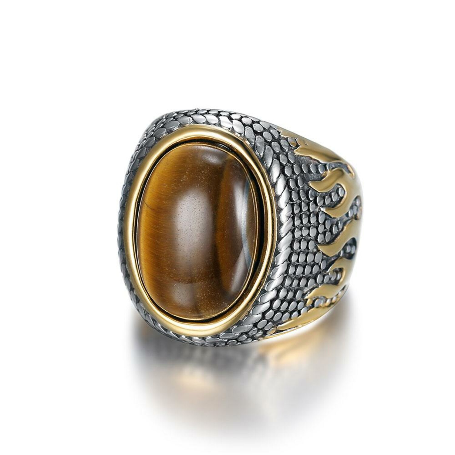 Vintage Tiger Eye Ring With Gold Flames // Silver