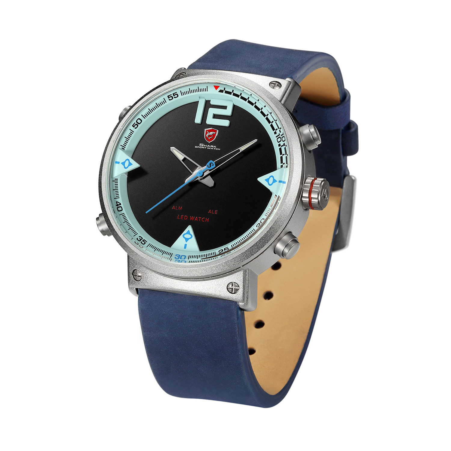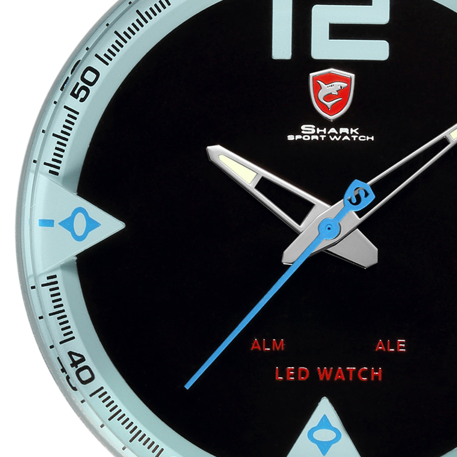 The Carpetshark Quartz watch presents the best of both worlds, with a dual movement allowing for analog and LED displays. It features a high quality Japanese movement and LED date and time display, as well as an alarm function. It's just the thing for the person who wants maximum functionality out of their watch.