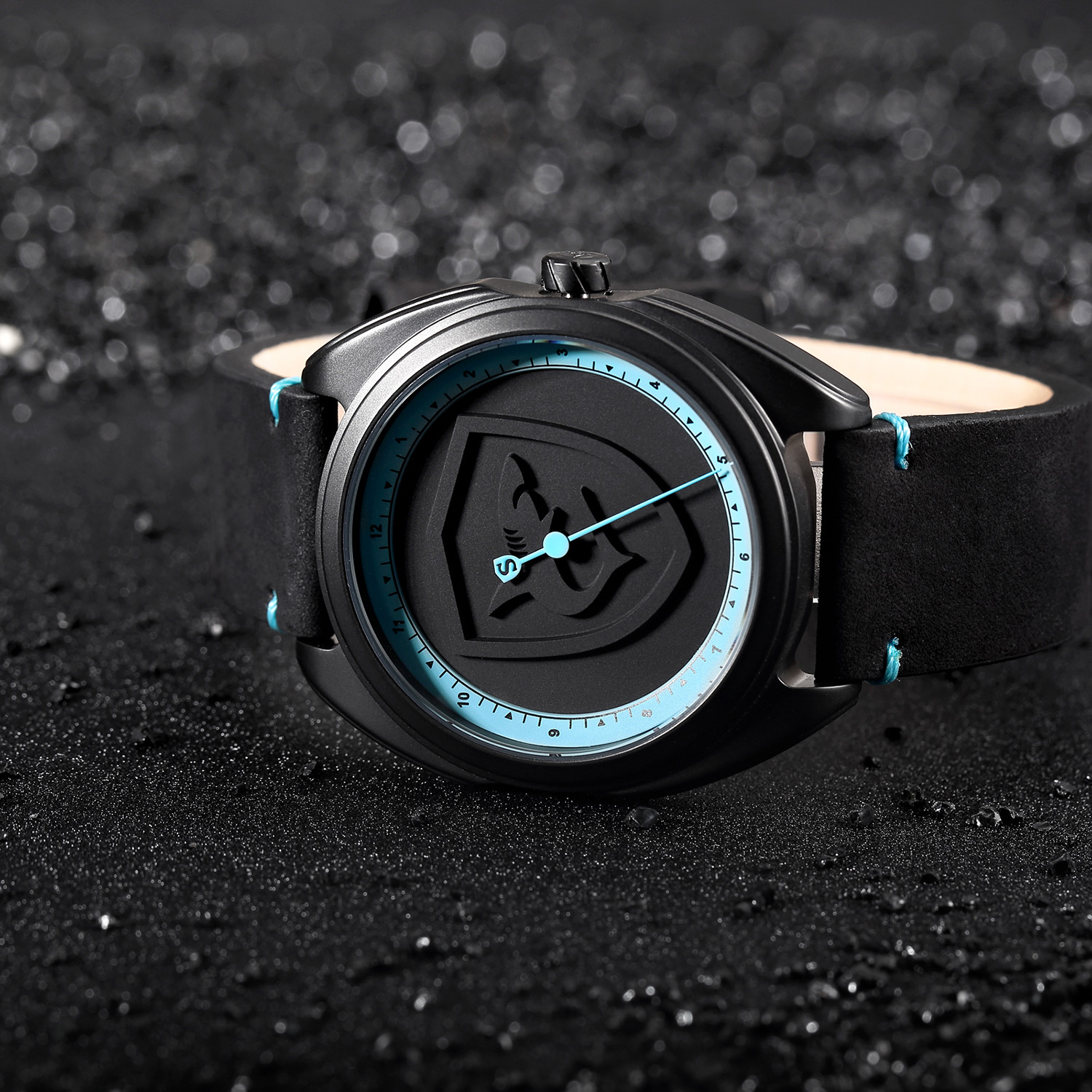The three-dimensional Collared Carpetshark Quartz features Shark's unique one hand design to indicate the time in a sophisticated minimalistic style. Featuring a solid stainless steel case and crown, as well as a Crazy Horse Leather band, this is one watch that's ready for anything.