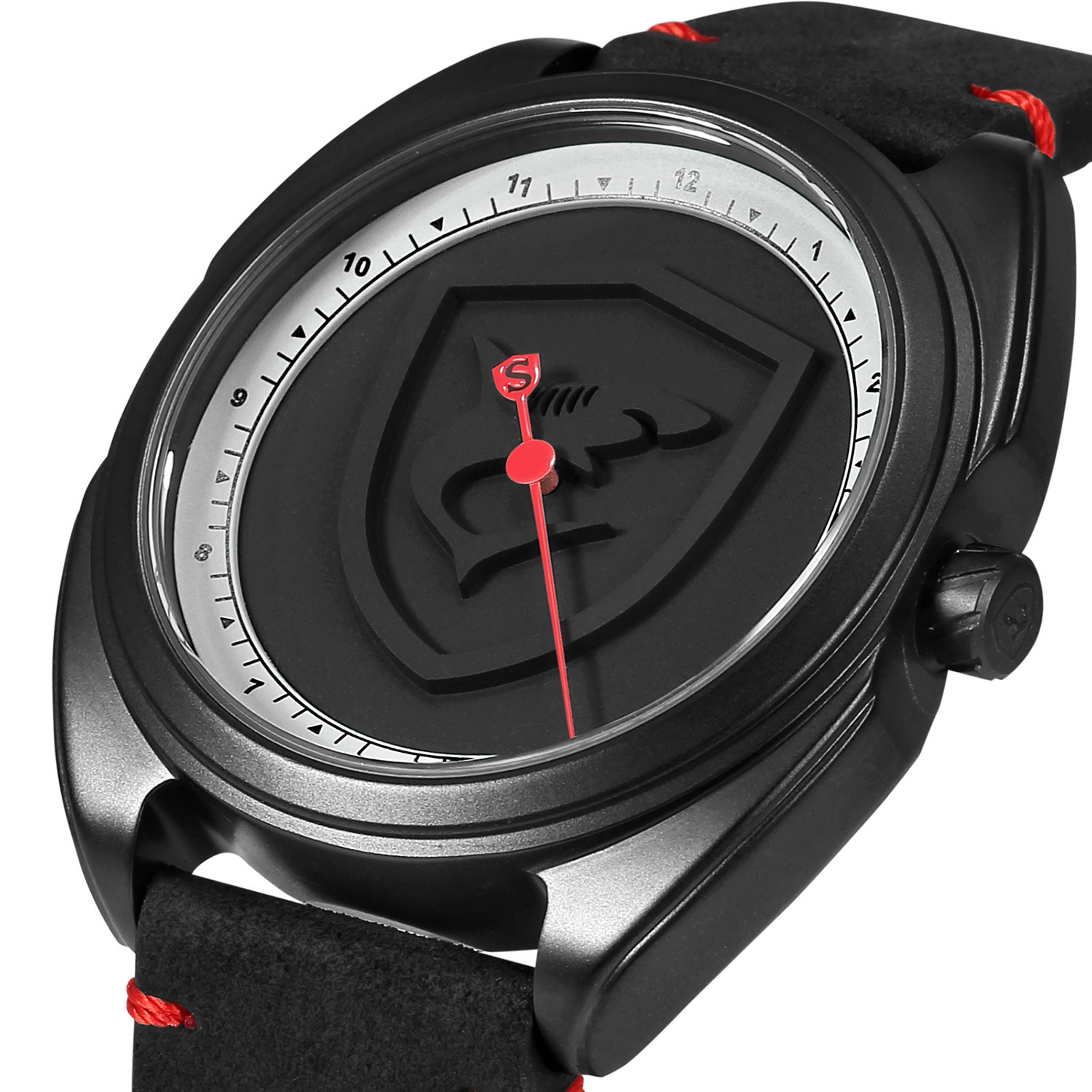 The three-dimensional Collared Carpetshark Quartz features Shark's unique one hand design to indicate the time in a sophisticated minimalistic style. Featuring a solid stainless steel case and crown, as well as a Crazy Horse Leather band, this is one watch that's ready for anything.