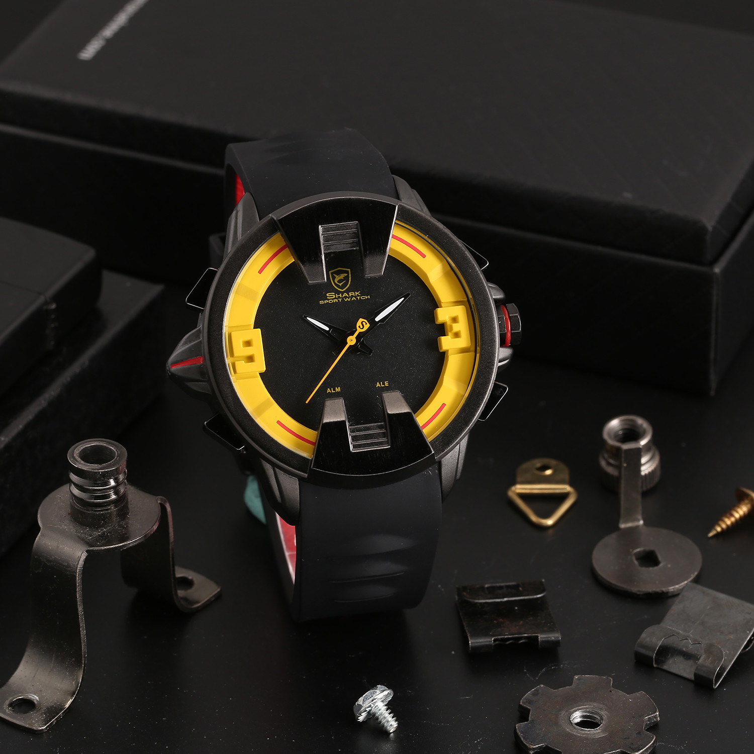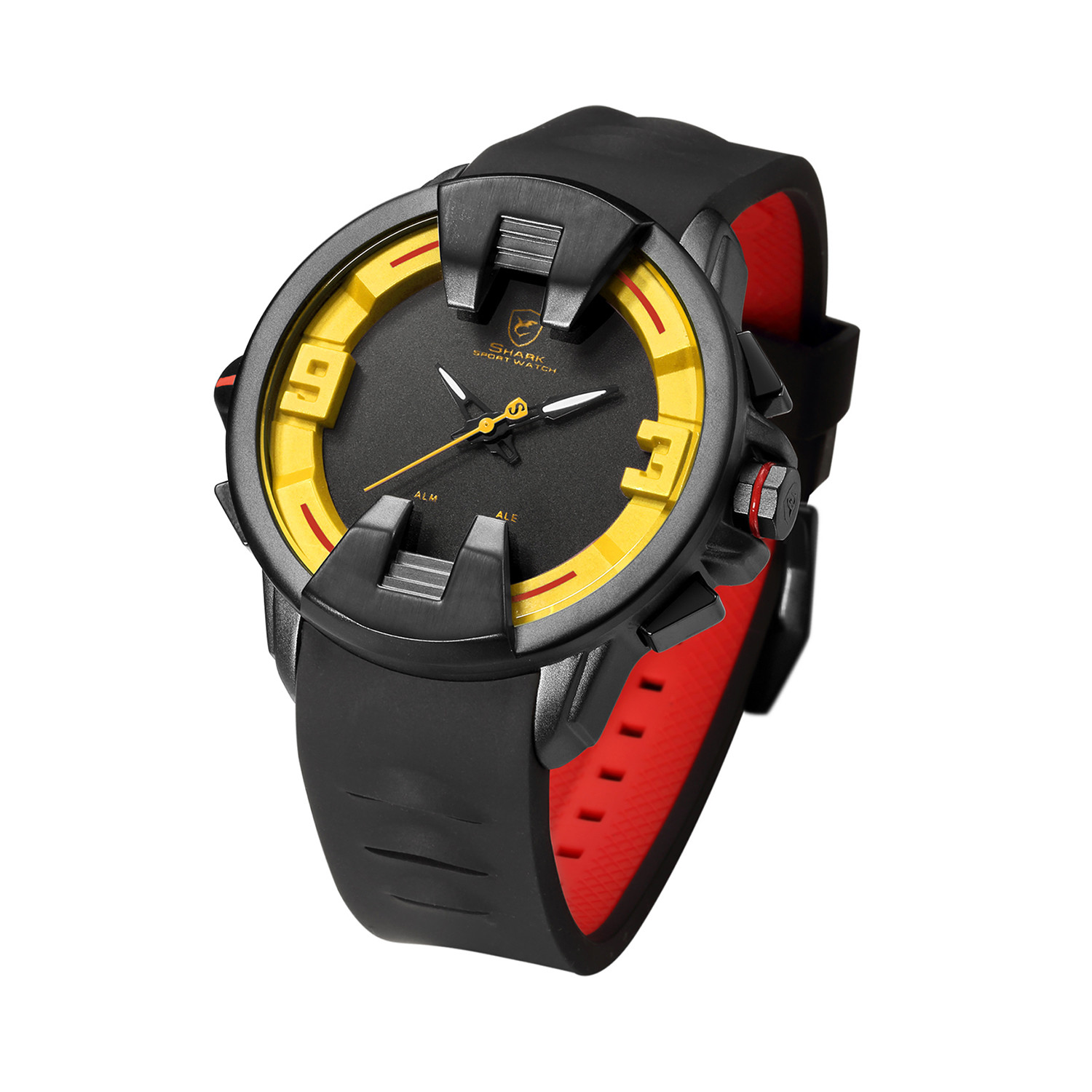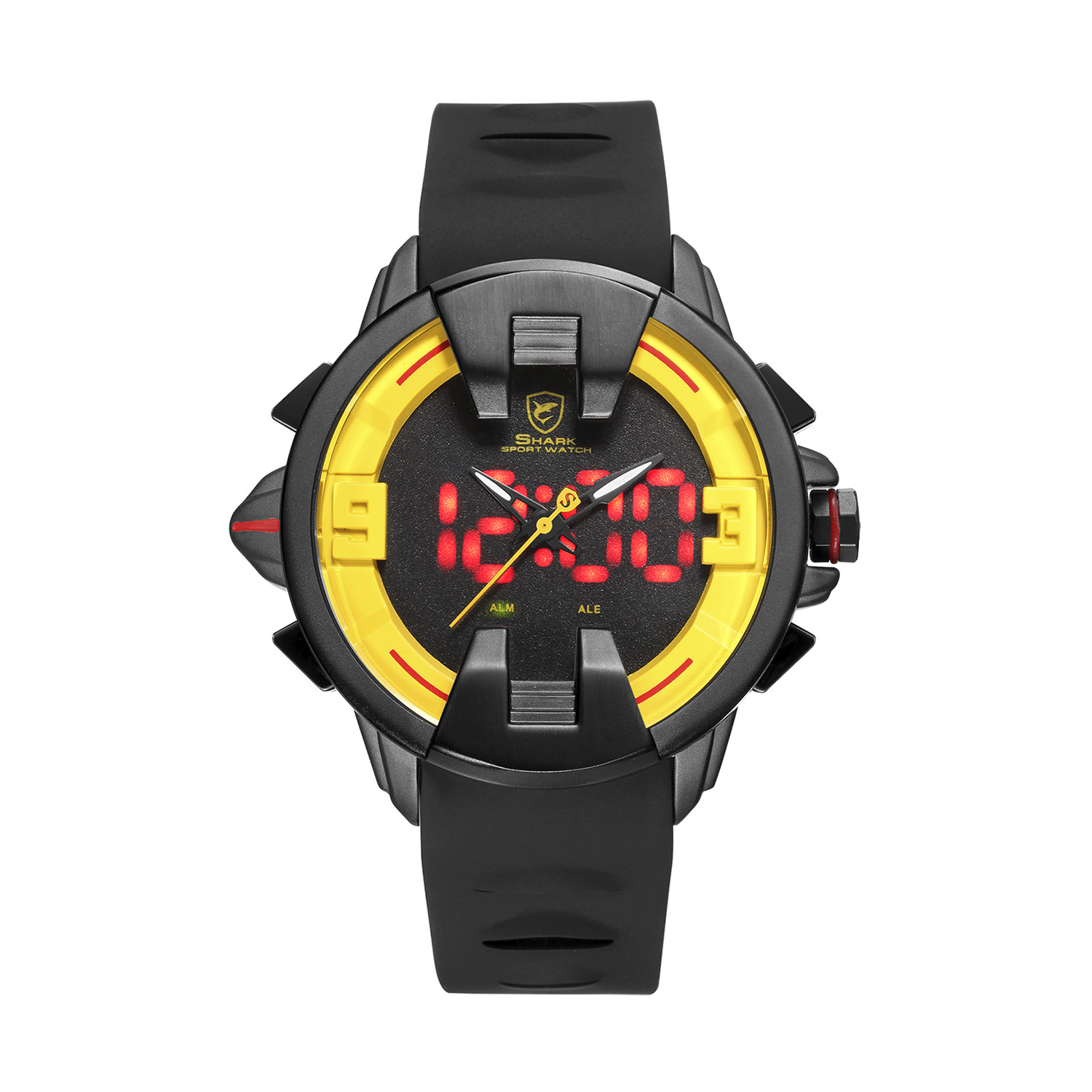 The Wobbegong Shark Quartz is a watch that can take a beating and still bite back. With a tough heavy metal case, this LED watch allows for multiple functions, including day, date, and alarm. The custom designed silicone Shark band adds to both the durability and style of this striking piece.