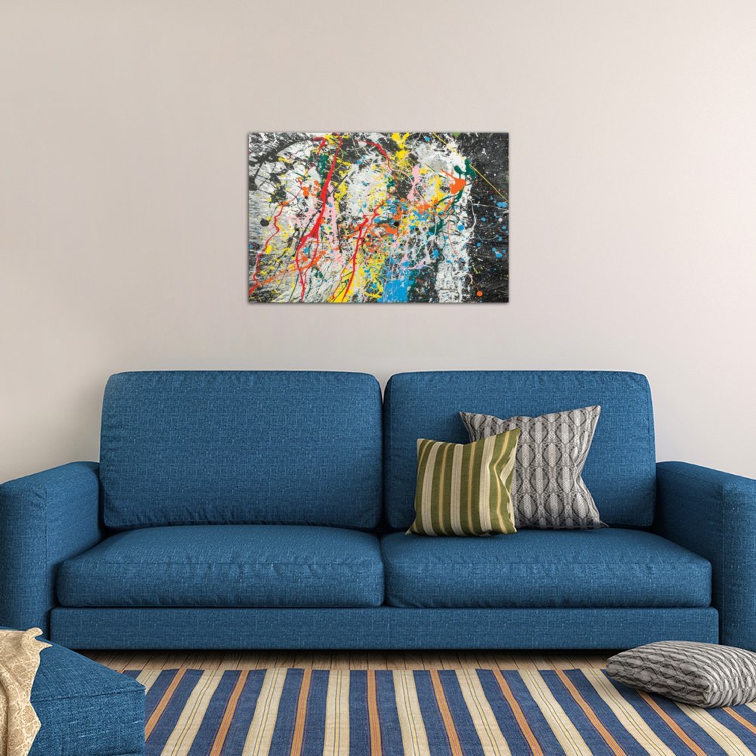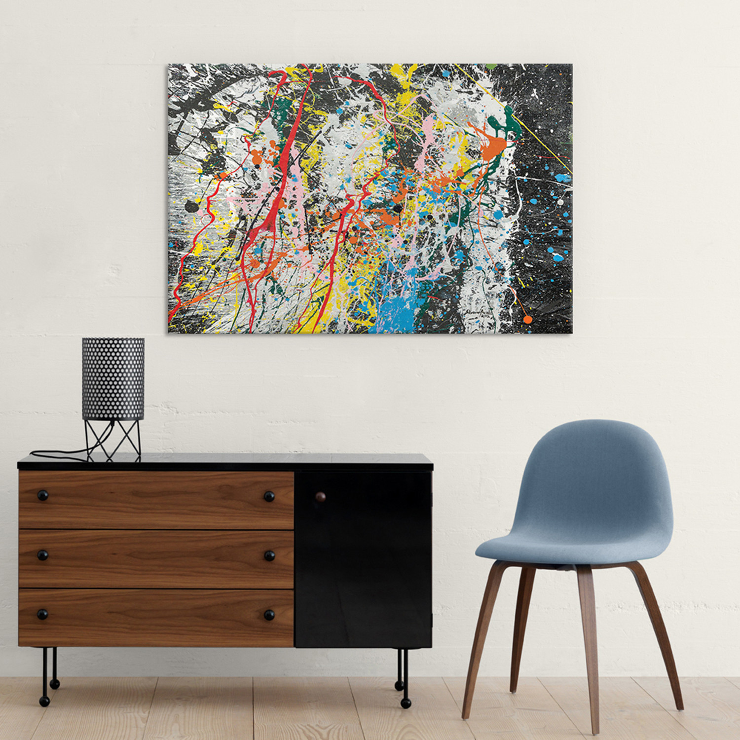 Spice up your space with Shawn Jacobs bold use of color, line, and ill-defined forms. This vivid canvas print perfect showcases his signature style, and offers a swirl of energy and dramatic mystery that will mean something different to everyone who lays eyes on it.