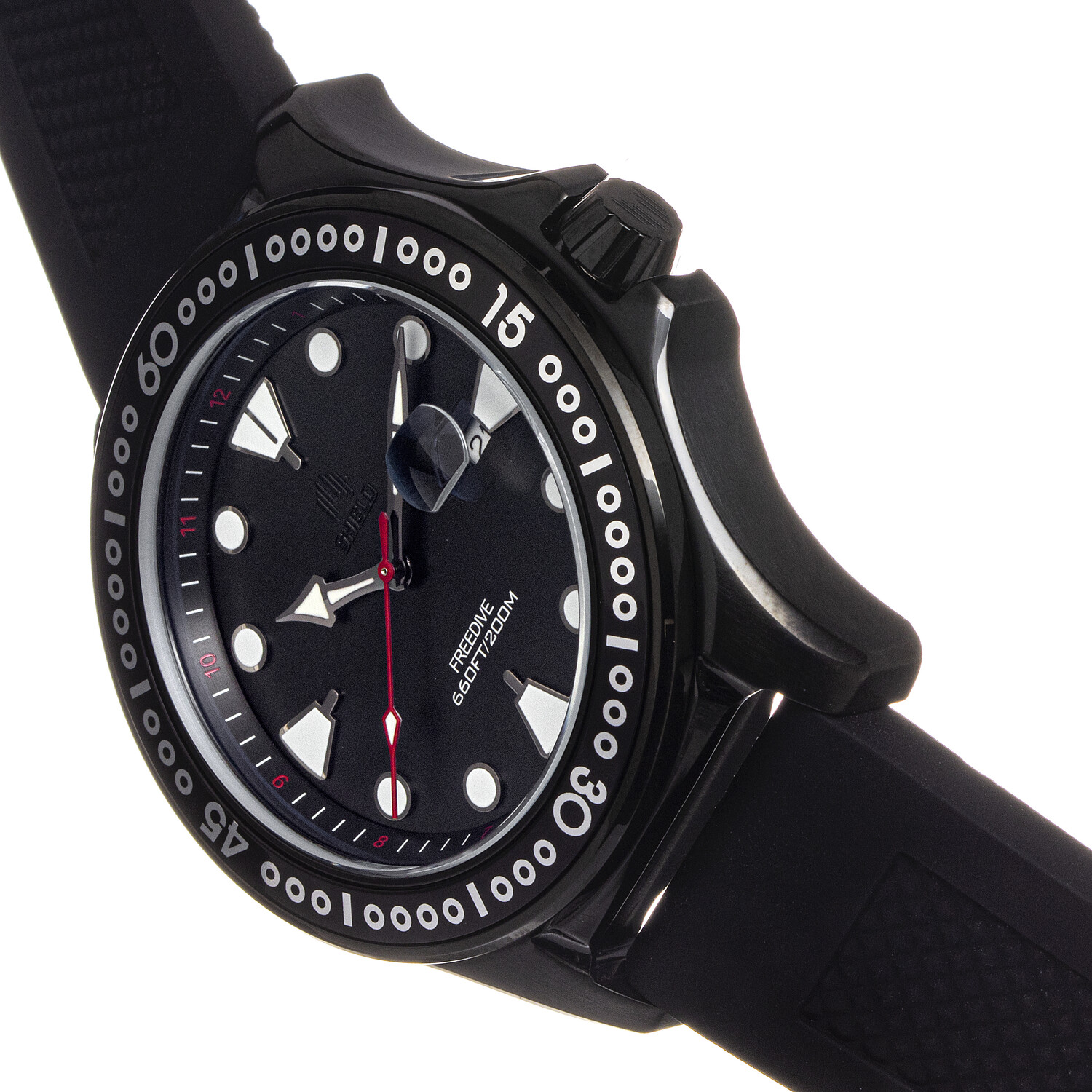 Shield creates contemporary dive watches tested to withstand double the with the ISO 6425 standard at 20atm (600ft). The high contrasting, non-cluttered dials and superluminova-treated hands and markers ensure these timepieces are super legible even in low-light conditions. With robust builds made for the pros, these watches set a new standard in utility.