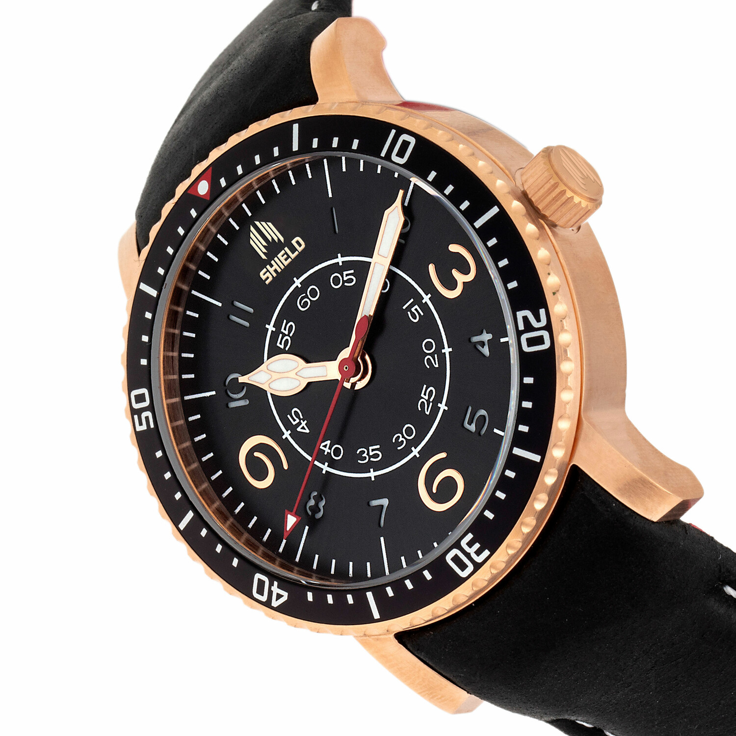 Shield creates contemporary dive watches tested to withstand double the with the ISO 6425 standard at 20atm (600ft). The high contrasting, non-cluttered dials and superluminova-treated hands and markers ensure these timepieces are super legible even in low-light conditions. With robust builds made for the pros, these watches set a new standard in utility.