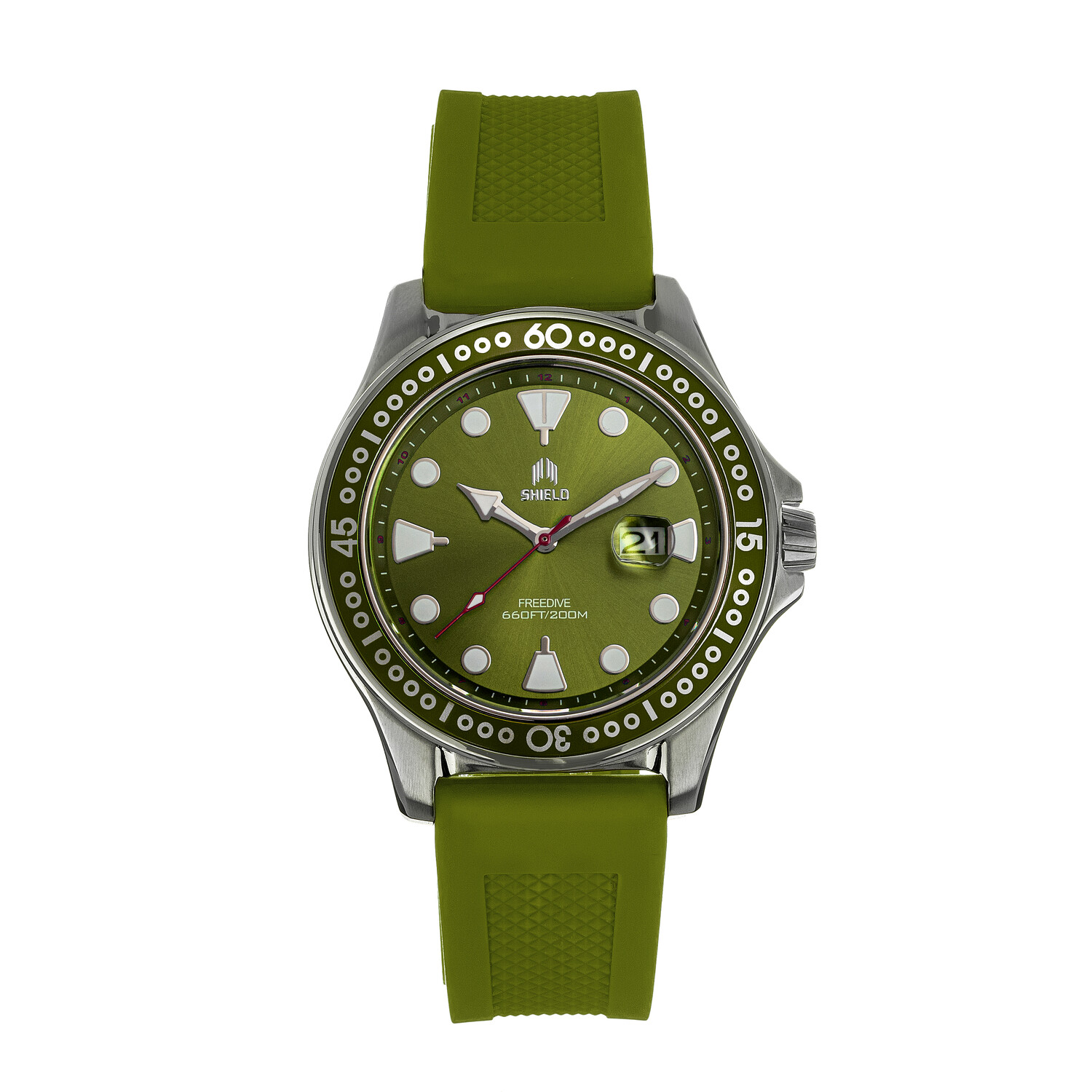 Shield creates contemporary dive watches tested to withstand double the with the ISO 6425 standard at 20atm (600ft). The high contrasting, non-cluttered dials and superluminova-treated hands and markers ensure these timepieces are super legible even in low-light conditions. With robust builds made for the pros, these watches set a new standard in utility.