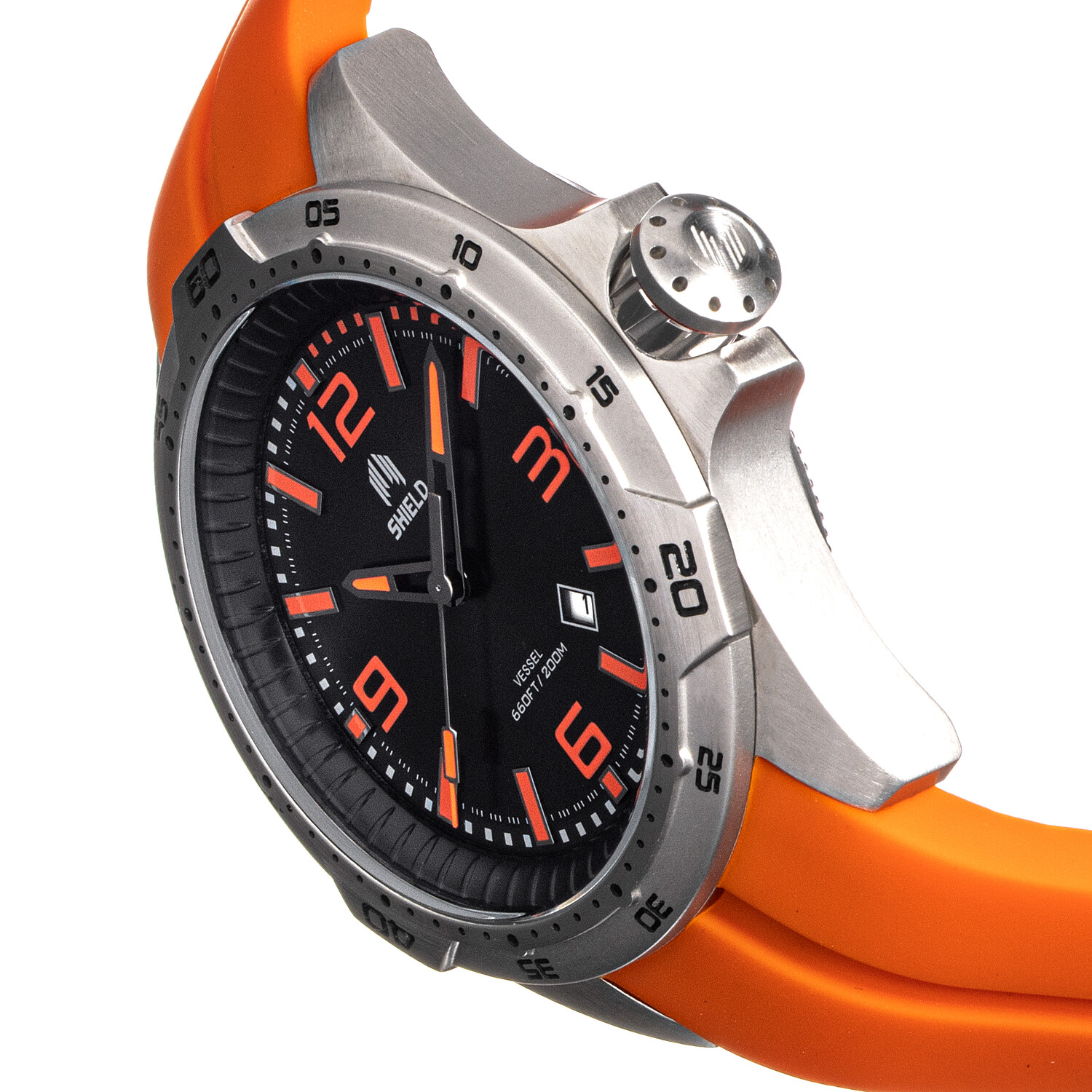 Shield creates contemporary dive watches tested to withstand double the with the ISO 6425 standard at 20atm (600ft). The high contrasting, non-cluttered dials and superluminova-treated hands and markers ensure these timepieces are super legible even in low-light conditions. With robust builds made for the pros, these watches set a new standard in utility.
