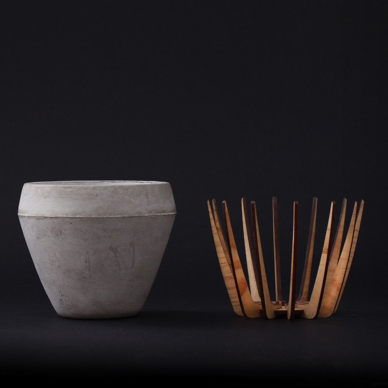 La Morena is a pot that combines two materials rarely seen together, wood and cement. The combination of both results in an honest and balanced artifact where concrete’s stony aesthetics are countered and warmed by wood’s organic looks.
