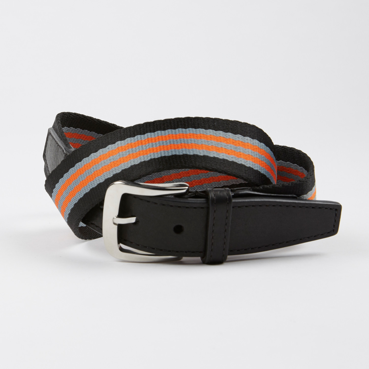 Nylon Striped Tack Single Keeper Belt // Black + Grey + Orange
